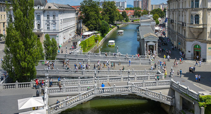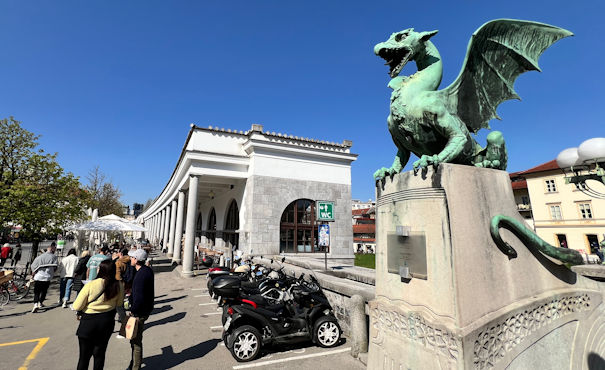In Laibach parken wir am Burgberg direkt vor dem Schloss und fahren mit der Standseilbahn ins Stadtzentrum hinunter. Ljubljana ist uns sehr sympathisch, es ist warm und die Gastronomie spielt sich schon im Freien ab. Wir spazieren durch die ausgedehnte Fußgängerzone, die schmale und geschwungene Markthalle mit ihren Kollonaden entlang, und sehen uns den Dom an. Mehrere unverwechselbare Brücken queren die Ljubljanica, die in einem großen Bogen um den Burgberg fließt: Drachenbrücke, Dreibrücken, Schusterbrücke. Auf der Neustadtseite des Flusses fasziniert der Kongressplatz mit der Ursulinenkirche. Wir übernachten am Mola-See kurz vor der Grenze zu Kroatien. Km 114/471.