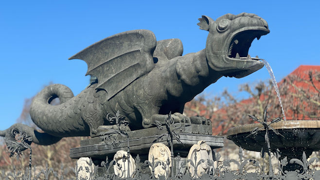 Nächstes Problem: Der Kühlschrank kühlt nicht. Eine LED zeigt an, dass die Batteriespannung zu niedrig ist. Das kann aber nicht sein, denn das Voltmeter zeigt 13 Volt an und auch bei laufendem Motor schaltet sich der Kühlschrank nicht ein. Susis Idee, ihn am Wechselrichter mit 230 Volt zu betreiben, funktioniert. Immerhin tagsüber können wir kühlen, aber für die Nacht ist uns die Lüftung des Inverters zu laut. In Klagenfurt statten wir dem Lindwurm einen Besuch ab und wir spazieren durch den ansprechenden Ostermarkt. Dann geht es über den Loiblpass nach Slowenien. In Bled blicken wir von der Burg hinunter auf den See mit der berühmten Kirche auf der Insel, fahren dann ein Stück den See entlang und genießen den Blick auf die Insel mit der Burg und den schneebedeckten Bergen im Hintergrund. Wir campieren in einem Wald zwischen Kranj und Ljubljana. Km 159/357.