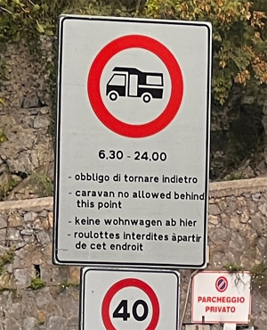 Wir fahren die Halbinsel Sorrent hinaus, von der sich immer wieder schöne Blicke auf Neapel und den Vesuv bieten, bis zum kleinen Ort Termini, von dem man nach Capri hinüber sieht. Eine kurze Wanderung führt zur Kirche San Constanzo. Die Rückfahrt führt über den Grat der Halbinsel, so dass man nach jeder Kurve ein anderes Meer sieht, einmal den Golf von Neapel und einmal den Golf von Sorrent. Am Nachmittag geht es dann die Amalfiküste entlang, doch da gibt es zwei Probleme: Erstens besteht für die gesamte Region ein Fahrverbot für Wohnmobile von 6:30 bis 24 Uhr. Gut, dass unser Zerberus nicht wie ein Womo, sondern wie ein Lieferwagen aussieht. Eigentlich wollten wir den einen oder anderen Ort an der Amalfiküste ansehen, aber das ist völlig undenkbar, denn es gibt (zweitens) einfach keine Parkplätze. In Amalfi etwa werden wir durchgewunken; die einzige Parkmöglichkeit wäre eine Parkgarage weit außerhalb des Ortes, aber da passt natürlich ein Zerberus nicht hinein. Nur an wenigen Parkbuchten zwischen den Orten kann man für ein Foto anhalten, die allermeisten Plätze sind von Einheimischen belegt, weil auch die in den Orten keine Parkmöglichkeit haben. Man kann sich gut vorstellen, welch Chaos hier in der Hauptsaison herrscht. Davon abgesehen ist die Amalfiküste einfach wunderschön. Malerisch schmiegen sich die Dörfer mit ihren pastellfarbenen Häusern an die Steilhänge. Wir übernachten auf einem gut besuchten Stellplatz außerhalb von Salerno. Km 112/1527.