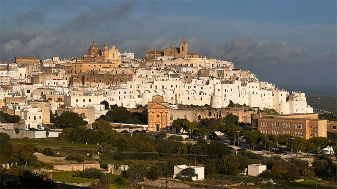 Wir kommen zur besten Foto-Zeit nach Ostuni: Die weißen Häuser strahlen in der Morgensonne. Den Vormittag halten wir uns in Alberobello, der Hauptstadt der Trulli, auf. Wir kriegen noch leicht einen zentralen Parkplatz und haben die Stadt noch kurz für uns, bevor gegen Mittag schon die Touristenschwärme einfallen. Zum Nachmittagskaffee sitzen wir nochmal in der Sonne, es hat noch 23 Grad. Wir fahren bis Termoli, wo wir auf einem Parkplatz an der Promenade am Meer übernachten. Km 347/3.541.