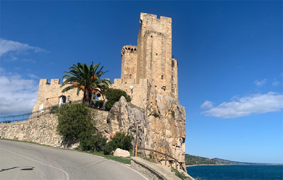 Es stünden noch mehrere malerische Bergdörfer auf dem Programm, aber die dunklen Wolken, die sich an den Bergen stauen, lassen uns an der Küste weiterfahren. Eine gute Idee, denn bald ist es sonnig und warm. Bei der Besichtigung der Festung in La Castella weht uns aber eine heftige Brise um die Köpfe. Der unangenehme Wind verleidet uns einen Aufenthalt an einem der ansonst recht ansprechenden Strände. Km 296/2.807.