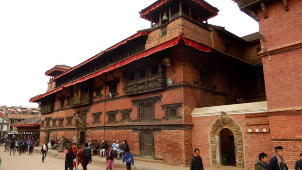 Delhi ist total vom Smog eingehüllt. Die Nacht war wegen der Zeitverschiebung kurz, wir sind sehr müde. Hier kann man endlich den Zielort für unser Gepäck im Computersystem ändern, so dass wir in Kathmandu wirklich unsere beiden Reisetaschen in Empfang nehmen können. Ein 15-Tage-Visum kostet 25 USD, wir erhalten es am Flughafen. Ein Taxi bringt uns zum Zerberus, den wir kaum wiedererkennen, weil er so verdreckt ist. Ein Reifen hat einen Platten, gut, dass wir das Auto vorsorglich aufgebockt haben. Als wir unser Gepäck verstaut haben, dämmert es bereits. Wir nehmen ein Taxi und fahren nach Patan, einem alten Stadtteil von Kathmandu. Leider gibt es keine Straßenbeleuchtung, nicht einmal am Durbar Square, wo wir uns die zahlreichen Tempel und den Royal Palace ansehen wollten. Alles liegt im Dunklen.