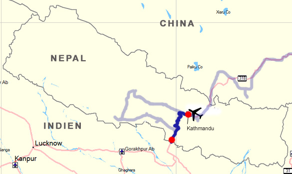 Wir haben unseren Flug nach Delhi mit Air India und jenen von Delhi nach Kathmandu mit Indigo getrennt gebucht, weil sich dadurch ein gewaltiger Kostenvorteil und eine kürzere Transitzeit ergaben. Eher aus Langeweile als aus Sorge rufe ich heute am Flughafen Linz an, ob wir unser Gepäck auch wirklich hier schon bis Kathmandu einchecken können. Man sagt mir, dass das nicht möglich ist, weil es sich um verschiedene nicht kooperierende Airlines handelt; wir müssen unser Gepäck in Delhi vom Band nehmen und neu einchecken. Dazu wird die Transitzeit von einer Stunde und 20 Minuten aber sehr knapp. Doch es kommt noch besser: Um überhaupt in Delhi zum Gepäckband zu gelangen, müssten wir durch die Passkontrolle, wo unser Indien-Visum abgestempelt wird. Da es sich um ein Single-Entry-Visum handelt, könnten wir dann nicht mehr mit dem Auto von Nepal nach Indien einreisen. Wir müssten in Kathmandu um wieder viel Geld ein neues Visum beantragen, das uns aber verweigert werden würde, weil zwischen Aus- und einer neuerlichen Einreise zumindest 2 Monate liegen müssen. Die Reise wäre also recht schnell zu Ende. Damit wir unser Gepäck von Linz direkt nach Kathmandu schicken können, muss ich den Flug Delhi-Kathmandu neu buchen, mit Air India versteht sich. Ich habe Glück: Nicht nur, dass es noch reichlich Plätze in dem Flieger gibt, der Flug kostet jetzt nur mehr 24 Euro.