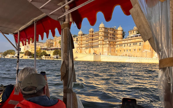 Am Vormittag besichtigen wir zunächst den Jagdish-Tempel, an dem vor allem die kunstvollen Reliefs beeindrucken. Dann geht es zum riesigen Stadtpalast mit seinen vielen prunkvoll ausgestatteten Räumen. Es bietet sich ein schöner Blick auf die Inseln im Pichola-See. Schließlich spazieren wir durch den Sahelion-ki-Bari-Garten, der einst nur von Frauen betreten werden durfte. Am Abend machen wir dann noch eine Bootsfahrt auf dem Pichola-See. Auf der Insel Jagmandir genießen bei überteuerten Cocktails den fantastischen Blick auf die Stadt.