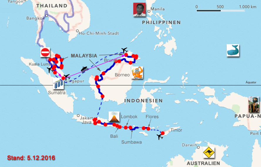 Mit dem Wohnmobil um die Welt Etappe 8: Malaysia - Indonesien Oktober - Dezember 2016 |