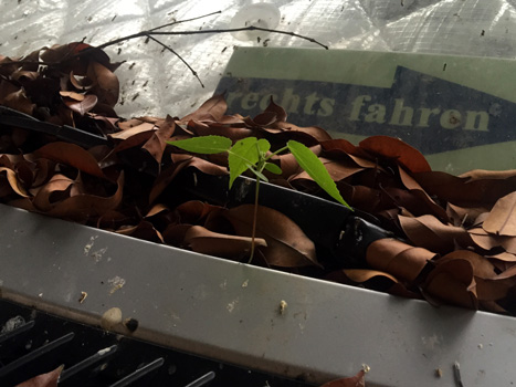 Nochmals. Fallen Piniennadeln auf das Auto? Nein, wir befinden uns nicht unter