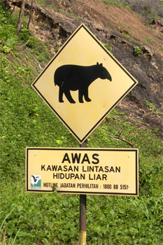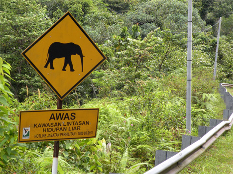 Ich habe also gerade den Drucksensor am Luftfilterkasten gewechselt in der Hoffnung, dass nun der ausgefallene Turbo wieder funktioniert. Ich fahre weg, beschleunige und hurrrrraaaa, der Zerberus verfügt wieder über seine vollen 180 Pferdestärken. Echt Schwein gehabt. Wir sind zutiefst erleichtert. In Kuala Lipis kaufen wir eine Flasche Schnaps, denn der ist uns ausgegangen. In vorwiegend muslimischen Ländern lernt man schnell, wo es Alkohol zu kaufen gibt: in den Chinatowns. Chinesen sind keine Muslime, trinken Alkohol und verkaufen ihn auch. Die Nachtplatzdatenbank schwärmt von einem tollen Platz am Westeingang des Taman Negara Nationalparks, weshalb wir heute ausnahmsweise bis eineinhalb Stunden nach Sonnenuntergang fahren. Am Parkeingang brennt zwar die Beleuchtung, doch kein Mensch ist hier. Da das Gate eine Wagenbreite offen ist, fahren wir rein und finden einen supertollen Nachtplatz. Endlich gibt es die lang ersehnte Dusche hinter dem Auto! Km 303/755/54.525.