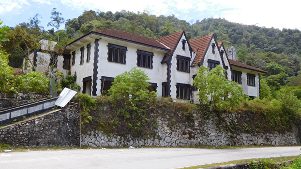 Wir haben Glück: Kein Nebel, keine tief hängenden Wolken. Wir drehen daher nochmals eine Runde durch Genting Highlands und wahrlich, ich sage euch: Unglaublich, welchen Wahnsinn sie hierher gebaut haben und noch immer bauen: Ein Hotelsilo neben dem anderen, dazwischen Parkhäuser mit tausenden von Parkplätzen. Aber alles ohne jegliche Kreativität wie etwa in Las Vegas. Einfach nur Betonklotz neben Betonklotz. Was aber spektakulär ist, das ist die Sicht auf Kuala Lumpur, sogar den Menara-Tower und die Petronas Twin Towers kann man erkennen. Wir halten nochmals am Chin Swee-Tempel, sehen uns heute die grausigen Darstellungen der zehn Grotten der Hölle an und fahren dann weiter Richtung Frasers Hill, einer weiteren, von den Engländern begründeten, Hill-Station auf etwa 1.200 Metern. Wir halten kurz am Splash-Stausee, dessen "Besucherzentrum" von zwei fadisierten Uniformierten bewacht wird. Die Straße ist im weiteren Verlauf recht kurvig und führt durch ansprechenden Urwald. Immer wieder liegen größere Äste auf der Straße, die der gestrige Sturm von den Bäumen gepflückt hat. Einige Kilometer unterhalb von Frasers Hill befindet sich das verfallende The Gap Resthouse, das uns aber das schönste Beispiel britischer Architektur hier zu sein scheint. Gegenüber führt eine Fußgänger-Hängebrücke über die Wipfel der tiefer liegenden Urwaldriesen. Die Auffahrt nach Frasers Hill ist so eng, dass man ein Einbahnsystem geschaffen hat, und führt ebenfalls durch Urwald mit vielen Baumfarnen. Frasers Hill ist viel kleiner als wir uns das vorgestellt haben, nur mehr ganz wenige Häuser aus der Zeit um 1900 sind zu finden. Zudem ist der Ort wie ausgestorben, sogar die meisten Lokale haben geschlossen. Über Raub geht es nach Jerantut, wo genau zur Nachtplatzsuche ein Gewitter über uns hereinbricht. Wir dürfen uns in einer Halle bei einer Tankstelle unterstellen und können trotz Regen Fenster und Dachluken öffnen. Was für ein Glück! Leider behalten die Bordbatterien des Zerberus trotz heute langer Ladezeiten keinen Strom. Wir müssen wohl bald neue Batterien kaufen. Km 247/452/54.222.