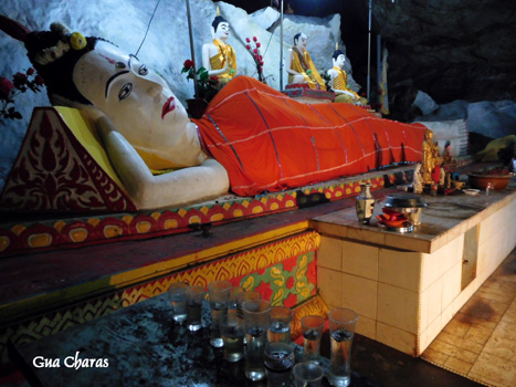 befindet sich ein zirka 9 Meter großer liegender Buddha, zuvor passiert man