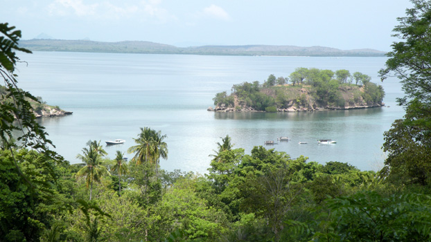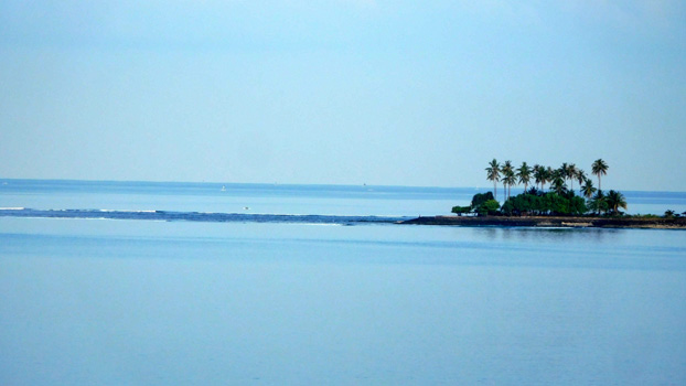 Vor dem Frühstück gibt's ein Bad im Meer. Mit dem American Breakfast im Resort sind wir alles andere als zufrieden, es gibt nur zwei Scheiben Toast, der Fruchtsaft ist geschmacklos, der Kaffee ist nicht runter zu kriegen, es gibt keine Milch. Und dann verlangen sie allen Ernstes 60.000 Rupien (4,30 Euro) p.P. für das Frühstück. Zum Vergleich: Das heutige leckere Mittagessen in einem Warung (Essenstand) kostet 10.000 Rupien p.P., dazu pflückt uns die Wirtin noch fünf große Mangos vom Baum. Da es in Sumbawa keine Sehenswürdigkeiten gibt und an unserer Route auch keine Strände, fahren und fahren und fahren wir. Die Landschaft ist wenig abwechslungsreich: hügelig, grün, Felder, Busch, kaum einmal Wald, wenig Schatten, an der Küste Mangroven, selten ein schmaler Sandstrand, dahinter aber Felder, die eingezäunt sind. Die Straßen sind erstaunlich gut und breiter als auf den anderen Inseln. Am späten Nachmittag sind wir in Sape. Wir haben Glück, denn am Abend geht eine Fähre nach Labuan Bajo auf Flores. Wir bleiben unerlaubter Weise auf dem Fahrzeugdeck im Auto, weil's hier viel bequemer ist als in den Passagierräumen. Km 312/8.315/61.959.