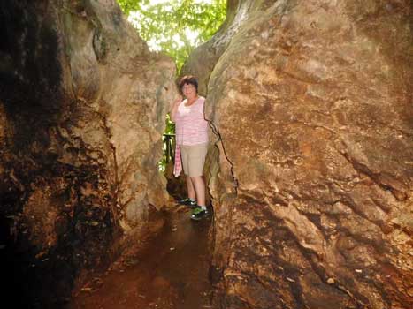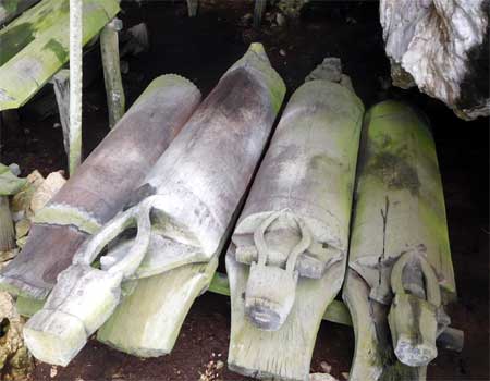 In Batu Putih sehen wir uns 500 bis 900 Jahre alte Höhlengräber an. Um zu den Höhlen zu gelangen, muss man über eine steile Treppe hochsteigen. Hier gibt es so viele Mücken, dass wir uns gar nicht schnell genug mit Insektenspray einsprühen können. Vor allem Susi kriegt einige üble Stiche ab. In mehreren Höhlen befinden sich Holzsärge, teils mit Rinderköpfen verziert. Von einer Aussichtsplattform auf dem Gipfel des Felsens hat man einen schönen Blick auf die umgebenden Palmplantagen. Die Monokultur wird uns den ganzen Tag und wohl auch morgen begleiten. In Lahad Datu sehen wir uns den chinesischen Tempel an und kaufen auf dem Markt ein. Westlich der Stadt steht auf einer Anhöhe ein weiterer buddhistischer Tempel. Ein anderer Tempelbesucher interessiert sich, ob wir den Tempel nur angesehen oder auch gebetet haben. Wir führen ein interessantes Gespräch über die Religionen. Er ist Hindu und die Heirat mit einer Buddhistin hätte seinen religiösen Horizont stark erweitert. Die weitere Fahrt nach Tawau ist eintönig, weil es außer Palmplantagen nichts zu sehen gibt. In Tawau halten wir zwei Mal. Einmal an der Stadteinfahrt, weil der Sprit aus ist. Ich dachte, es geht sich noch aus bis zu einer Tankstelle. Also fünf Minuten Pause zum Umpumpen aus dem zweiten Tank. Dann ein Halt an der Tankstelle. Das Tankstellennetz ist hier weit geknüpft, zwischen den Städten gibt es bestenfalls Benzin aus der PET-Flasche, Diesel gar nicht. Wir machen einen Abstecher in die Tawau Hills, einerseits weil es hier einen Canopy Walkway gibt, andererseits, weil wir hoffen, dass wir auf dem Parkplatz vor dem Park übernachten können. Beides leider Fehlanzeige. Der Canopy Walkway ist wegen Renovierung geschlossen, vor dem Parkplatz gibt es eine Höhenbegrenzung auf ca. zwei Meter zwanzig. Also weiter fahren. Die nächste Stadt, Kalabakan ist etwa 80 Kilometer entfernt, das sollte sich bis Sonnenuntergang ausgehen. Leider ist die Stadt ein übles Kaff, kein Vergleich mit Lahad Datu oder Tawau. Als wir einen annehmbaren Nachtplatz finden, ist es bereits dunkel. Wir wollen noch etwas essen gehen und lassen nach einem Blick zum Himmel die Dachluken offen. Fünf Minuten später, noch auf dem Weg zu einem Lokal, kriegen wir es schon mit der Angst zu tun, es könnte jeden Moment regnen und das Auto überschwemmen. Wir beeilen uns daher, essen nicht im Lokal, sondern nehmen das Futter mit und essen im heißen aber Gott sei Dank trocken gebliebenen Auto. Heute macht Susi die Hitze sehr zu schaffen. Jetzt nach dem Essen Holen laufen ihr Schweiß und Tränen in Strömen den Körper hinunter. Nur das schnelle Hervorholen der Ventilatoren und laufen Lassen auf höchster Stufe, sowie die Verabreichung mehrerer Dosen Schnaps verhindern einen Nervenzusammenbruch. Km 394/3.542/57.310.