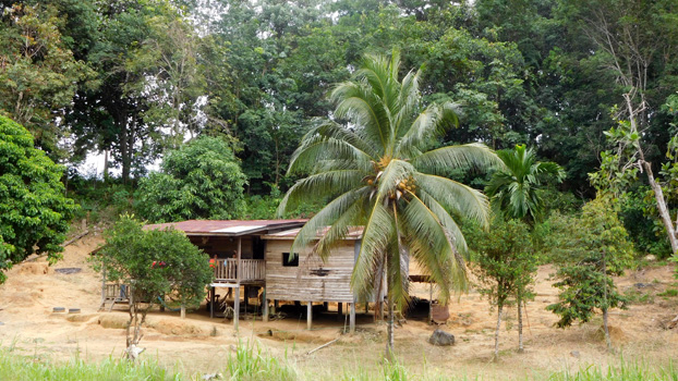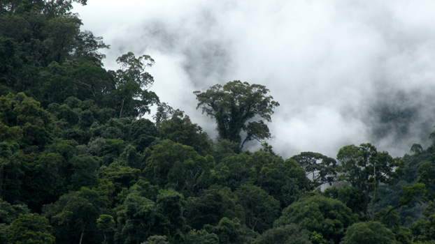 In der Früh ist es neblig wie im November ;-) Nach kurzer Fahrt beginnt es zu regnen, der Niederschlag hält ganzen Tag an. Die Straße von Tawau nach Keningau war noch vor einigen Jahren besonders in der Regenzeit eine Herausforderung, da die Piste durch die vielen Holztransporte stark ausgefahren war und die schweren LKW mit weit überstehenden Holzstämmen andere Fahrzeuge von der Straße drängten. Heute ist die gesamte Strecke asphaltiert und abgesehen von reichlich Bodenwellen problemlos ganzjährig befahrbar. Noch immer bringen unzählige Lastwagen Holz aus den Wäldern nach Kalabakan, von wo die Stämme auf dem Fluss weiter transportiert werden. Auf den gesamten 350 Kilometern gibt es von der Straße aus keinen Urwald mehr zu sehen, nur mehr Sekundärwälder, Nutzholzplantagen oder waldlose Flächen, die nur von schnell wachsenden Boden deckenden Pflanzen bedeckt sind. Aus Keningau rufen wir im Rafflesia Information Centre an, aber noch immer gibt es keine blühende Rafflesie.