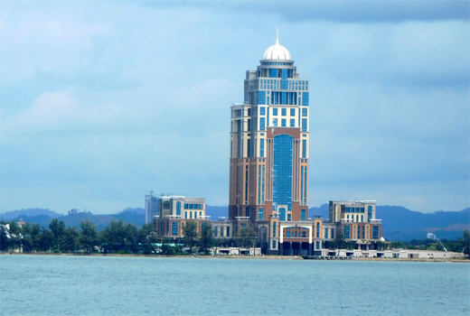 Mit Air Asia fliegen wir nach Kota Kinabalu, der Hauptstadt der ostmalaysischen Provinz Sabah. Anscheinend haben wir übersehen, dass man bei Air Asia das Essen an Bord extra buchen und bezahlen muss, und so sitzen wir hungrig da, während rund um uns alle futtern. Offensichtlich sehen wir so Mitleid erregend aus, dass mein Nachbar einen Teil seines Essens und ein Getränk an uns abgibt. Erst bei Dunkelheit kommen wir ins Hotel. Hier erreicht uns die Nachricht, dass die Straits Challenger mit unserem Zerberus nicht wie erwartet gestern angekommen ist, sondern erst heute um 23 Uhr einlaufen wird. Jetzt sind wir froh, dass wir nicht, wie zuerst geplant, gestern aus Singapur abgereist sind, sondern uns einen Tag länger dort Zeit genommen haben.