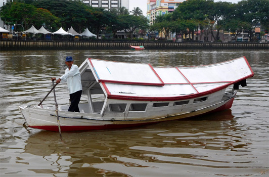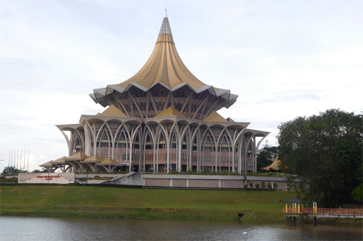 Kuching ist super. Wir mögen die Stadt auf Anhieb. Ku Ching heißt Katze und die Katzen sind allgegenwärtig, in den Souvenirläden, als Denkmal, es gibt sogar ein Katzenmuseum. Die Fahrt hier her war unspektakulär: Bodenwellen, Autobahnbaustellen, Sekundärwälder, Ölplantagen, Pfeffer. In Laching sehen wir uns Liew's Pfefferfarm an. Viel gibt es da nicht zu sehen: Pfefferstauden und eine ausgeklügelte mechanische Vorrichtung, die schöne runde Pfefferkörner von anderem Zeug trennt. Wir kaufen, wie es sich gehört, ein Packerl überteuerten Pfeffer aus eigener Produktion. Dafür dürfen wir unseren Wassertank auffüllen. Mr. Liew ist völlig aus dem Häuschen, weil ich Wasser tanke und nicht Benzin. Er zeigt mir einen Benzinkanister und deutet auf sein Auto. Ich erkläre ihm, dass er für seinen Wagen natürlich Benzin tanken muss. Ist ja ein Toyota und kein Mercedes ... Am Nachmittag sind wir in Kuching. Wir können beim Margherita-Hotel parken. Die nette Dame an der Kassa zeigt mir die Preisliste. Die erste Stunde kostet 4,50, jede weitere 1 Ringgit. Wenn man sein Parkticket verloren hat, bezahlt man 10 Ringgit. Das wird hier wohl öfter vorkommen. Wo hab ich unser Ticket jetzt hingetan? Wir sehen uns zwei chinesische Tempel an und spazieren die Waterfront entlang bis zum Square Tower, von dem man einen guten Blick auf das State Legislative Assembly am anderen Flussufer hat. Sieht aus wie eine riesige Zitronenpresse. In der Nähe befinden sich weitere koloniale Gebäude, Old Courthouse und Alte Post. Zurück geht es durch die Chinatown, an deren Ende einige wirklich nette Lokale gelegen sind, Drunken Monkey, Wrong Place, Sarawak Museum Shop & Cafe, aber nirgends ist was los, das Stadtzentrum ist beinahe ausgestorben. Km 435/5.146/58.914.