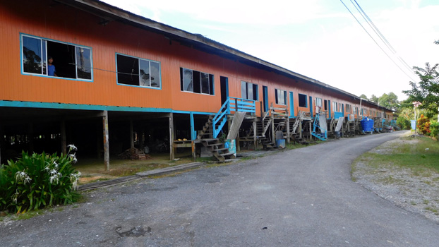 Über Miri und Bintulu geht es nach Sibu, knapp 500 Kilometer. Die Straße ist mit Ausnahme eines Stückes guter Autobahn um Bintulu sehr stark mit Bodenwellen verseucht, so dass ich voll konzentriert fahren und immer wieder abbremsen muss. Auf etwa drei Viertel der Strecke wird an der Autobahn gebaut. Anfangs nur vereinzelt, dann zunehmend häufiger tauchen Langhäuser auf. Das sind, wie der Name schon vermuten lässt, sehr lange Häuser, meist zweistöckig und aus Holz, am ehesten mit einem Reihenhaus vergleichbar. Früher wohnte in einem traditionellen Langhaus ein ganzes Dorf, oft über 100 Menschen, wobei jede Familie einen eigenen Eingang von einer gemeinsamen Veranda hatte. Die Iban scheinen an dieser Wohnform festzuhalten, denn auch neue Häuser sind ähnlich gebaut. Wir hoffen, in den nächsten Tagen alte Langhäuser zu sehen. Etwa 25 Kilometer vor Sibu gibt es einen großen chinesischen Tempel, an dem wir übernachten wollen. Doch das Einfahrtstor ist schon abgesperrt und auf dem Parkplatz davor hängen zwei schräge Typen rum, die gerade über Tempelumzäunung geklettert sind. Wir fahren daher weiter nach Sibu und übernachten an einer Tankstelle. Km 540/4.711/58.479.