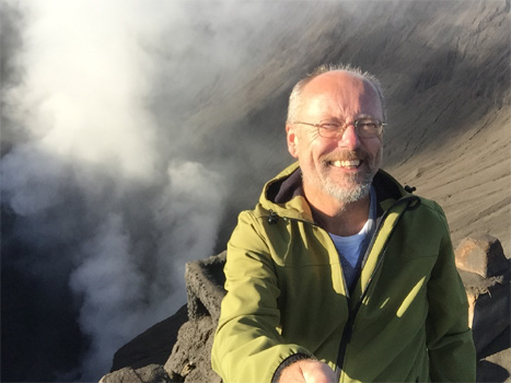 der nahe Mount Semeru spuckt Dampf). Man legt die Strecke zu Fuß zurück oder