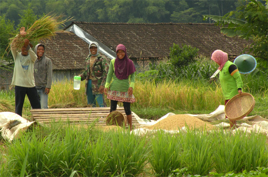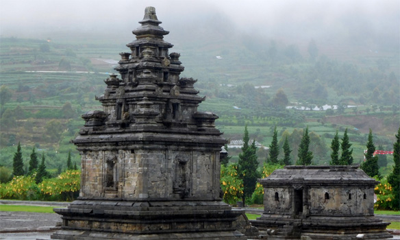 Wir schlafen schlecht und sind in der Früh grantig, weil der Parkplatz anscheinend ein beliebter Treffpunkt ist. Bis weit nach Mitternacht fahren Autos zu und ab, diskutieren Leute lautstark direkt neben dem Zerberus. Zudem ist es bereits um halb acht affig heiß und wir haben einfach keine Lust zu einer Stadtbesichtigung. Wir steuern daher das nächste Ziel an, die Tempel von Prambanan, etwa 20 Kilometer außerhalb von Yogyakarta. Die große buddhistische Tempelanlage, um die ein Park angelegt wurde, ist fantastisch. Die Welt ist wieder in Ordnung. Ein paar Kilometer weiter befinden sich weitere Tempel, Candi Plaosan, ebenfalls sehr ansprechend. Hingegen hat der auf einem Hügel gelegene "Palast" Kraton Ratu Boko rein gar nichts zu bieten. Wegen des tollen Blicks von der gemütlichen Restaurantterrasse war die Auffahrt allerdings nicht umsonst. Über Solo (Surakarta) geht es weiter ostwärts, wir wählen die Straße, die den Vulkan Gunung Lawu nicht umfährt, sondern direkt über ihn führt. Etwas abseits liegt auf 1.500 Metern der hinduistische Cetho-Tempel. Die Auffahrt ist enorm steil, die Tempelanlage, die in 13 Ebenen am Hang liegt, vermittelt ein mystisches Bild, da die Wolkenuntergrenze bei 1.150 Metern liegt. Unmittelbar vor uns ist eine Gruppe Hindus aus Bali angekommen. Die Leute haben schachtelweise Opfergaben mit, Blumen, Kränze, Räucherstäbchen, kleine Geldscheine, die sie vor Statuen und an Altären arrangieren. Wir fahren noch bis zum Candi Sukuh, einem weiteren Tempel auf 1.200 Metern, den wir uns morgen ansehen wollen. Km 139/6.396/60.041.