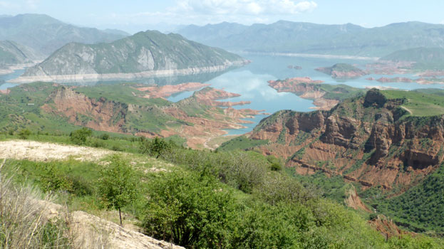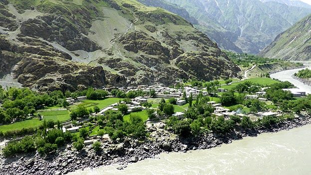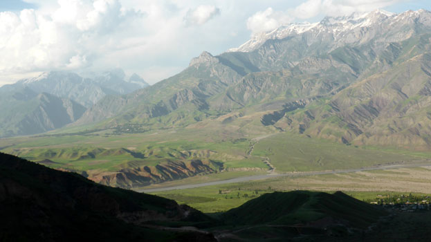 Gerüchte sind eine dumme Sache. Vor allem, wenn sie nicht stimmen. Wir haben gehört, dass man sich in Dushanbe (aber wo genau?) registrieren muss, bevor man ins Pamir-Gebiet einfährt, auch wenn man bereits das GBAO-Permit im Pass hat. Leider können wir weder Urs, noch Patrik, die da sicher genau Bescheid wüssten, erreichen. Gottseidank finde ich im Internet die Adresse (sogar mit Koordinaten) des OVIR-Büros, wo man uns sagt, dass das Permit im Pass reicht. Die Registrierung erfolgt bei der Einfahrt ins Pamir. Also viel Lärm um nichts. Die Straße von Dushanbe bis kurz vor Kulyab ist super ausgebaut und sogar mautfrei. Das Grün der Hügel scheint uns irgendwie unnatürlich, so als sähe man durch eine Sonnenbrille. Am Nurek-Staudamm machen wir kurz halt, aber man kann ihn leider nicht besichtigen. In Hulbuk gibt es eine schön restaurierte Festung; in einem der folgenden Dörfer essen wir in einem recht einfachen Lokal gut zu Mittag. Ab Khulab geht es über ein Pässchen von 1.985 Metern, bis es stetig zum Panj-River fällt. Die Straße ist schlecht bis miserabel, an vielen Stellen unterspült und es wird mit Baggern und Gradern am Erhalt der Befahrbarkeit gearbeitet. Weil das von zwei Routen ins Pamir die "gute" ist, sind viele Fahrzeuge unterwegs, Einheimische, Geländewagen von Reiseagenturen mit Touristen, UNO-Fahrzeuge und viele LKW, sogar welche mit Anhänger, und Sattelschlepper. Das Panj-Tal ist hier sehr breit, beiderseids des Flusses sind die Berge bis hoch hinauf grün. Und drüben ist Afghanistan. Im Panj-Tal darf man nicht außerhalb von Dörfern campieren. Wir wissen aber nicht, ob das nur im Pamir-Gebiet gilt, oder auch schon hier. Sicherheitshalber übernachten wir in einem der ersten Dörfer am Fluss. Bald sind wir von einer Schar Kinder umringt, die alles überneugierig genau beobachten, mir beim Duschen zusehen und ständig mit imaginären Maschinengewehren auf uns feuern. Wir sind froh, als sie endlich nach Hause gerufen werden. Km 291/15.229.