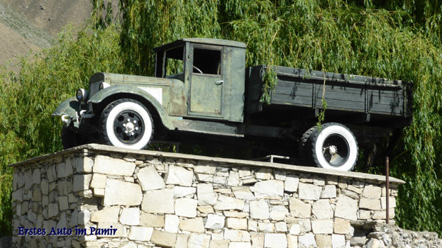 Weiter aufwärts fahrend weitet sich das Tal, der Panj gibt sich nun nicht mehr als reißender Gebirgsfluss, sondern schlüpft vorübergehend in die Rolle eines trägen, breiten Stromes. Erfreulicherweise verbessert sich gleichzeitig auch die Qualität der Straße und wir sind bereits zur Mitte des Vormittages in Khorog. Leider ist die Stadt momentan vom Internet abgeschnitten. Wir besuchen den zweithöchsten Botanischen Garten der Welt (2.200 Meter), sind aber recht enttäuscht, denn recht viel mehr als ein wenig gepflegtes Gestrüpp ist nicht zu sehen. Dennoch hat der Besuch sein Gutes: Wir parken am Rand der total steilen Zufahrtsstraße und ich lege sicherheitshalber Steine hinter die Räder. Dabei sehe ich, dass Öl aus dem hinteren Differentialgetriebe tropft und wer weiß, wann ich das sonst bemerkt hätte. Die Tropfgeschwindigkeit ist beunruhigend und wir suchen uns sofort eine Werkstatt. Die ist recht einfach, aber immerhin haben sie Werkzeug und sind zuversichtlich, dass sie das Problem innerhalb einer Stunde lösen können. Während ein Mechaniker am Getriebe arbeitet, beschäftige ich einen zweiten, der die Luftfilter reinigen soll. Was ein Fehler ist, denn ich kann nicht beide beaufsichtigen. Der am Getriebe zeigt mir den Riss an der Dichtung, verwendet reichlich Dichtmasse, braucht mich dann aber, weil er weder die Dichtung noch den Gehäusedeckel markiert hat. Mit Hilfe des Fotos, das ich zufällig vorher gemacht habe, kann ich ihm rasch die richtige Position zumindest des Deckels zeigen. In der Zwischenzeit hat der andere den Pollenfilter falsch eingebaut. Leider gibt es in der Werkstatt kein Getriebeöl, gut dass ich welches mithabe. Letztendlich, das heißt, nach etwa zwei Stunden, ist alles erledigt und ich bezahle 10 Euro. Wir laden nun den jungen Mann, der uns die Werkstatt gezeigt und gedolmetscht hat, zum Essen ein, was leider nochmals eineinhalb Stunden in Anspruch nimmt, weil der Service in dem sonst recht netten Lokal ziemlich lahm ist. Erst um halb vier verlassen wir Khorog, nun nicht, wie ursprünglich geplant, weiter am Panj und an der afghanischen Grenze entlang, sondern auf der Strecke im Landesinneren, die laut unserem Dolmetscher in bei weitem besseren Zustand sein soll, während verschiedene Quellen im Internet genau das Gegenteil behauptet haben. Wir denken aber, dass der Dolmetscher recht hat, denn die Straße ist wirklich o.k. und wir kommen rasch voran. Es geht stetig, einen türkisblauen Fluss begleitend, bergan und bald sind 3.000 und 3.500 Meter erreicht. Während mir die 2.200 in Khorog bereits zu schaffen gemacht haben, wird Susi erst jetzt kurzatmig. Wir wollen nicht auf noch größerer Höhe übernachten, ich bin ohnehin die letzte halbe Stunde in Halbnarkose gefahren. Wir campieren daher in 3.370 Metern und sind froh, dass noch Zeit für weitere kleine Reparaturen ist, so kann ich die verbogene Halterung eines Stoßdämpfers mit dem Wagenheber halbwegs gerade biegen. Während ich in Khorog noch in kurzer Hose herumgelaufen bin, ist es hier schon empfindlich kühl. Km 262/15.737.