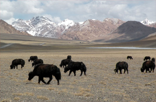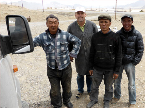 In der Nacht kühlt es so stark ab, dass wir die Heizung einschalten. Es wird kuschelig warm, doch als wir in der Früh erwachen, kommt nur kalte Luft aus den Düsen. Draußen hat es ein halbes Grad. Plus immerhin. Wir fahren durch eine wunderschöne Gebirgslandschaft mit schneebedeckten Fünf- und Sechstausendern. Schon nach kurzer Fahrt verliert unser Zerberus so stark an Leistung, dass er die geringe Steigung der Straße nicht schafft. Dieselfilter? Nein, er spuckt auch nach dem Filter reichlich Diesel aus. Ich versuch's nochmal und auf einmal fährt er wieder, als wär' nichts gewesen, packt auch den 4.294 hohen Koy-Tezek-Pass. Den darf man sich aber nicht wie einen Alpenpass vorstellen mit unzähligen Serpentinen, es geht langsam und stetig und völlig gerade bergauf und drüben wieder ein Stück auf das Murgab-Plateau hinunter. Mehrmals halten wir an und beobachten Murmeltiere und Yaks. Zu Mittag ist es dann so warm, dass ich mich unters Auto lege und um die Heizung kümmere. Sie bekommt anscheinend keinen Diesel. Die Pumpe funktioniert, ich blase mit dem Kompressor auch die Schläuche durch, aber ohne Erfolg. Das wird wohl eine kalte Nacht werden. Etwa 15 Kilometer vor Murgab ist ganz plötzlich wieder der Leistungsverlust da, der Motor läuft nur mehr auf Standgas. Ich wechsle den zweiten Dieselfilter, doch das hilft nicht. Wir müssen uns wohl oder übel abschleppen lassen. Auf dem Pamir-Highway fahren viele tadschikische und chinesische LKW, die nicht nur das Pamir, sondern auch den entlegenen Teil Afghanistans versorgen, der nur von Tadschikistan erreichbar ist. Zweimal kommen kleinere Autos, aber erst nach eineinhalb Stunden ein LKW. Es ist ein Chinese, der uns anhängt. Erfreulicherweise fährt er recht behutsam. Er bringt uns zum LKW-Terminal in Murgab, wo es gerade dunkel wird, als wir ankommen. Km 206/15.945.