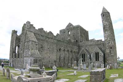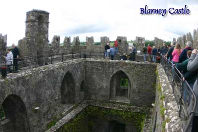 Es begrüßt uns der Morgen mit Sonnenschein, das sollte für längere Zeit der letzte sonnige Tag sein. Wir sehen uns die katholische St. Mary’s Cathedral mit ihrem 65 Meter hohen Kirchturm an (kostenlos). Das gotische Innere ist nicht sehr beeindruckend. An der St. Canic’s Cathedral (4,-) besteige ich den neben der Kirche stehenden Rundturm (2,-) und habe einen netten Blick über die Stadt. Wir fahren nun weiter durch das Golden Vale, dem Kernland der irischen Rinderzucht: Tausende Kühe – weiße, schwarze, gefleckte – sind auf den Weiden. Schon bei der Anfahrt auf den Ort Cashel sieht man von weitem den Rock of Cashel. Majestätisch thront die Burg auf dem aus einer Ebene ragenden Kalksteinhügel. Einen kostenlosen Parkplatz findet man, wenn man von "hinten" auf die Burg zugeht (N52 31.090 W7 53.605). Während der Besichtigung (Heritage-Card) ziehen dunkle Wolken auf und noch bevor wir von der unter der Burg gelegenen Hore (nicht Whore !) - Abbey (Eintritt kostenlos) zum Auto zurückkommen, regnet es. Aber ohne Schirm geht man in Irland ohnehin nirgends hin. Weiter geht’s nach Cahir, wo wir uns das Castle (Heritage-Card) auf einer kleinen Insel im River Suir ansehen. In Mitchelstown gehen wir in einem Supermarkt einkaufen. Alles ist sehr teuer, besonders Alkohol. Whiskey ist praktisch unerschwinglich. Nun fahren wir noch nach Cork, wo wir übernachten wollen. Einen Parkplatz zu finden, auf dem wir auch morgen Vormittag noch stehenbleiben können, ist nicht leicht; schließlich finden wir einen in einer Wohnstraße im Süden der Stadt (etwa N51 53.4 W8 27.2). Für die "ten minutes", die man laut Auskunft eines netten Corkers ins Zentrum geht, brauchen wir fast eine halbe Stunde. Mit großem Hunger suchen wir ein Lokal, wo es einheimisches Futter gibt. Vergeblich! Die zahlreichen Pubs bieten keine Speisen an und zum Mc Donalds wollen wir nicht. Nach langem finden wir ein Restaurant, das aber so voll ist, dass ca. 20 Leute auf einen Tisch warten. Da wir uns mit einem Tisch im Freien begnügen, müssen wir nicht warten und bekommen unser Essen rasch serviert: Teuer, dafür geschmacklos. Am Rückweg zum Auto regnet es wieder. Oder noch immer? Km 158/1.730.