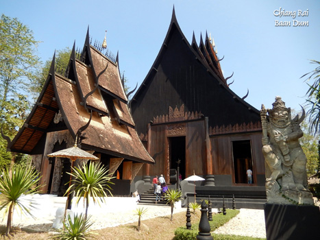 Museum an, das schräge alte Holzfiguren zeigt. Beide Tempel sehen nicht typisch