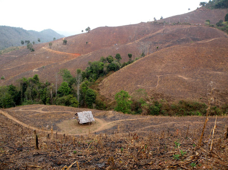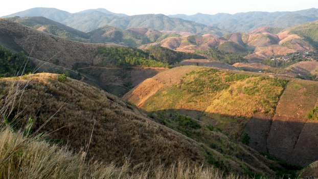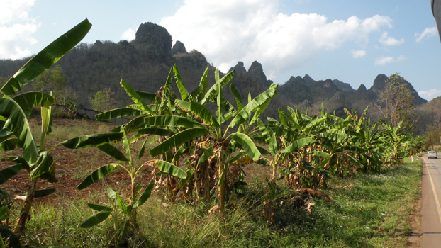 Auf sehr kurvigen aber sogar hier in der Einöde äußerst guten Straßen geht es weiter durch das Bergland. Am Vormittag repariere ich die tropfende Dieselleitung. Schon gestern habe ich festgestellt, dass ein Knie, das zwei Schläuche verbindet, einen Sprung hat. Der Wohnmobilausbauer hat ein Plastikknie für eine Dieselleitung verwendet! Leider ist kein Metallteil zu kriegen und so kaufe ich zur Behelfsreparatur wieder eins aus Plastik. Nach Mittag kommen wir an die Grenze, an der es sehr gemütlich abgeht, denn kaum jemand will hier rüber. Die Abfertigung nimmt auf thailändischer Seite 15 Minuten in Anspruch, das ist sensationell, wenn man sich an das Chaos bei der Einreise in Mae Sot erinnert.