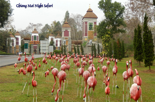 In Bangkok hat es 29 Grad und wir schwitzen sogar im klimatisierten Flughafengebäude. Wir müssen durch die Passkontrolle, dann unser Gepäck vom Band holen und für den Flug nach Chiang Mai neu aufgeben. Obwohl der Flughafen sehr groß und etwas unübersichtlich ist, geht sich das in einer dreiviertel Stunde aus. In Chiang Mai, wo es übrigens 37 Grad hat, werden wir von Herrn Atikul, dem Service Manager bei Mercedes, persönlich vom Flughafen abgeholt und zum Zerberus gebracht. Der ist sozusagen runderneuert: Neue Windschutzscheibe, neues Türscharnier, Turbo funktioniert wieder, Delle ist weggemacht. Eine Versicherung, wie versprochen, können wir leider nicht abschließen, wir fahren weiterhin ohne Haftpflichtversicherung in Thailand. Nach einem Einkauf im Supermarkt sehen wir uns noch den Chedi-Luang- und den Phra-Sing-Tempel an, dann geht es durch die einsetzende Abendstoßzeit raus aus der Stadt und obwohl wir schon sehr müde sind, besuchen wir noch die Chiang Mai Night Safari, einen mit 800 Baht = 22 EUR p.P. ziemlich teuren, aber nett angelegten Zoo, den man nächtens auf offenen Wagen durchfährt. Allerlei Getier kommt zum Greifen nahe, Karnivoren befinden sich vernünftiger Weise immer hinter Zaun. Wir übernachten auf einem Parkplatz des Zoos. In der Nacht regnet es, aber ich schlafe so tief, dass ich lange nicht bemerke, dass es durch die Dachluke genau auf meinen nackten Po regnet. Km 21/21/44.422.