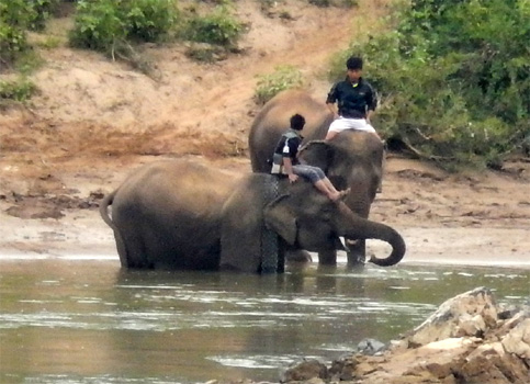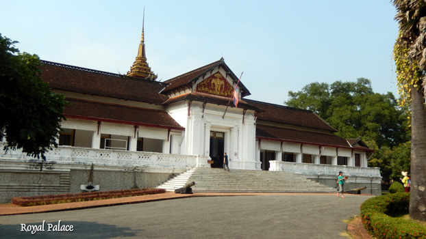 Wir fahren die paar Kilometer bis Pak Ou, wo wir uns mit einem Boot zu den an der rechten Mekong-Seite gelegenen Höhlen bringen lassen. Während die untere (sehenswertere) Höhle mit Buddha-Statuen verschiedenen Alters beinahe überfüllt erscheint, bietet die obere Höhle den Pilgern der nächsten Jahrhunderte noch reichlich Platz für Statuen. Vor Mittag erreichen wir Luang Prabang, die angeblich schönste Stadt Laos'. Und das glauben wir sofort. Allein die halbinselförmige Lage der Altstadt an Nam Khan und Mekong ist großartig. Dazu die vielen gepflegten zweistöckigen Häuser, stimmungsvolle Guesthouses und Lokale, über dreißig Tempel, das viele Grün und nicht zu letzt: Es gibt kein Problem mit dem Verkehr. Zumindest jetzt in der Nachsaison fahren nur wenige Autos und Parkplätze sind leicht zu finden, überhaupt macht die Stadt einen sympathisch verschlafenen Eindruck. Luang Prabang muss man mögen. Wir sehen uns den Wat Xieng Thong an, ein hübsches Ensemble alter Tempel, deren Fassaden teils von Mosaiken aus färbigen Spiegelscherben verziert sind. Wir bummeln am Mekongufer entlang und essen hervorragend in einem Restaurant im Freien über dem Fluss. Der Königspalast, heute das königliche Palastmuseum, sieht von außen total unscheinbar, beinahe mickrig aus. Die Räumlichkeiten im Inneren, Eingangshalle mit Thron, Empfangshallen und -zimmer, Privaträume, sind aber echt toll und eines Königs würdig. Die roten Wände mit Mosaiken aus buntem Spiegelglas gefallen uns besonders. Leider darf man nicht fotografieren. Die fünfteilige königliche Autosammlung besteht aus drei stärker gebrauchten amerikanischen Straßenkreuzern aus den 50er und 60er-Jahren (keine Ahnung, wo man mit derartigen Limousinen damals in Laos fahren konnte), einem verrosteten Landcruiser und einem schwer restaurierungsbedürftigen Citroen DS. Ganz in der Nähe befindet sich ein neu erbauter Tempel mit phantastischer Dachkonstruktion, der eine besonders wertvolle 70 Zentimeter hohe Buddhastatue beherbergt. Wir fahren noch etwa 30 Kilometer Mekong abwärts und übernachten auf dem Parkplatz des Dschungelparks Tad Kuang Si. Km 77/1.475/45.877.