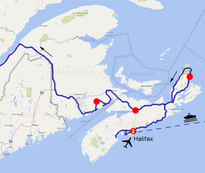 Die Einreiseformalitäten am Flughafen Halifax sind einfach und unkompliziert, man muss seinen Reisepass einscannen, sich fotografieren lassen und ein paar Fragen beantworten, etwa, ob man Drogen oder Waffen im Gepäck hat. Bei einer Mietwagenfirma haben wir einen Kleinwagen bestellt, der sich als X5 entpuppt. Wenn man die Ford, Dodge und GMC in der Mietwagengarage ansieht, geht der X5 in der Tat als Kleinwagen durch. Im Hotel stellen wir fest, dass unser Gepäck vom Sicherheitsdienst am Flughafen durchsucht wurde. Ziemlich gründlich sogar. Sie haben ein Zetterl hinterlassen, dem zu entnehmen ist, dass sie für aufgebrochene Schlösser nicht haften. Zu Abend essen wir in einem Pub gleich um die Ecke und wir probieren gleich mal ein typisch kanadisches Gericht: Poutine. Das ist nicht zufällig fett geschrieben, es handelt sich um Fleisch- und Käsestücke, die auf Pommes liegen, die in Gravy schwimmen und obendrauf ist auch noch jede Menge davon. Schmecken tut es lecker.