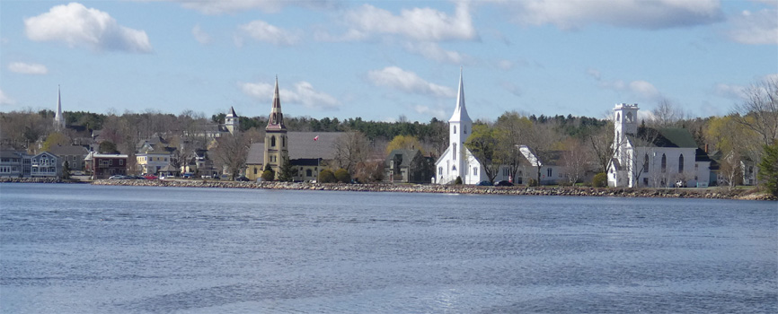 Bei einer anderen Gastankstelle mache ich's heute anders: Ich gehe zuerst an die Kasse und bezahle eine Flaschenfüllung und dann mit dem Beleg zur Füllstation. Der Kerl dort vermisst an unserer Gasflasche das kanadische Prüfzeichen und meint, ohne es darf er die Flasche nicht füllen. Ich zeige ihm das österreichische Prüfzeichen, aber das beeindruckt ihn wenig. Erst als er sieht, dass ich schon bezahlt habe, gibt er nach. Nun gilt es nur noch Wasser für unseren Tank zu finden. Das erweist sich als total schwierig, denn an Tankstellen ist keines zu kriegen und es gibt auch an Rast- oder Picknickplätzen keine Wasserhähne. Am Nachmittag sind wir schon so verzweifelt, dass wir beschließen, Wasser aus einem Fluss zu verwenden. Ich hab' schon die Badeschlapfen an und bin grade dabei, mit einem Kanister ins Wasser zu steigen, da sehe ich in kurzer Entfernung einen Wohnwagen zwischen Bäumen hervorlugen. Und noch einen. Ein Campingplatz! Hier dürfen wir gratis unsere Tanks mit Trinkwasser füllen. Endlich sind wir voll versorgt und können entspannt unseren Ausflug in die westliche Umgebung von Halifax fortsetzen. Am Vormittag haben wir uns schon Mahone Bay angesehen, ein Dorf mit sechs Kirchen, und Lunenburg, eine stimmungsvolle kleine Hafenstadt mit bunten, teils alten Häusern. Die Straße führt durch ausgedehnte Mischwälder, die Laubbäume tragen allerdings noch keine Blätter. Die Natur ist, verglichen mit Österreich, etliche Wochen "hinten", und das obwohl wir uns in gleicher geografischen Breite wie Venedig und Südfrankreich befinden. Hier blühen gerade erst die Forsythien und die Märzenbecher. Ob die hier wohl Maibecher heißen? Wir besuchen noch Peggy's Cove, ein Fischerdorf mit auf eine Felsnase gebautem Leuchtturm. Dann geht es durch von Seen und Meeresarmen durchzogene Wälder zurück nach Halifax. Von der Zitadelle hat man einen netten Blick über die Stadt. Wir sehen uns noch St. Paul's Church an, das älteste Gebäude der Stadt, und St. George's Round Church, eine ungewöhnliche Rundkirche mit Galerie. Auf dem ruhigen Parkplatz neben der Kirche übernachten wir. Leider macht uns der Zerberus schon wieder ein wenig Sorgen. Er gibt zwei pathologische Geräusche von sich. Das eine ist ein drehzahlabhängiges Surren, das schon kurz vor der Fahrt nach Bremerhaven aufgetreten ist, und das von einer der Rollen kommt (aber von welcher?), über die der Flachriemen läuft. Leider war keine Zeit mehr zum Reparieren. Das andere ist ein Knatschen beim Überfahren von Bodenwellen und kommt vermutlich von einem Traggelenk. Wir behalten beides unter Beobachtung. Km 286/373/98.929.