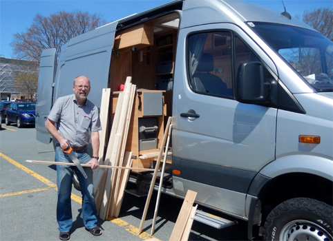 Gleich nach dem Frühstück fahren wir zum Spediteur. Dort erhalten wir nach Bezahlung der Hafen- und Speditionsgebühren die Frachtpapiere. Damit müssen wir zum Zoll, wo sie gestempelt werden, nachdem wir die Frage, ob sich im Auto Lebensmittel oder Waffen befinden, wahrheitsgemäß verneint haben. Nun können wir unser Wohnmobil am Hafen abholen. Unpraktischerweise befinden sich Spediteur, Zoll und Hafen jeweils acht bis zehn Kilometer voneinander entfernt. Dennoch ist in eineinhalb Stunden alles erledigt und wir sind wieder mit dem Zerberus vereint. Eine Inspektion des Fahrzeuges durch Zoll, Agrarbehörde oder Polizei findet nicht statt. Auf dem Parkplatz eines Shopping Centers baue ich die Trennwand aus und zersäge die Bretter, damit sie in den Kofferraum passen. Sie werden so manches Lagerfeuer nähren. Weil die Autos in Neu-Schottland vorne keine Kennzeichen haben, montiere ich auch unseres ab, damit wir nicht gleich als Ausländer auffallen. Nun bringen wir den Mietwagen zurück und machen einen Großeinkauf an Lebensmitteln und Getränken. An einer Gastankstelle möchten wir unsere Flasche füllen lassen, doch das machen die nicht, weil unsere Flasche kein Überdruckventil hat. Wir übernachten auf dem Parkplatz eines Shoppingcenters. Km 87/87/98.643.