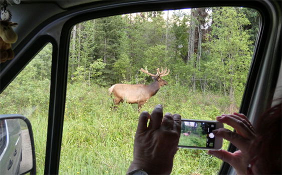Da die Wettervorhersage für morgen einen Wetterumschwung prognostiziert, stehen wir extra früh auf, um im Jasper Nationalpark möglichst viel bei gutem Wetter zu sehen. Die ganze Strecke von Lake Louise bis Jasper ist so spektakulär, dass einem die Superlative fehlen. Die Straße folgt meist einem Fluss, Dreitausender, wohin man blickt, dazwischen Seen, Wasserfälle und überall Wälder. Manche sehen schon herbstlich aus, doch bei näherem Hinsehen erkennt man, dass es sich bei der rotbraunen Färbung nicht um Laubbäume handelt, sondern um tote Nadelbäume. Der Borkenkäfer treibt ganz massiv sein Unwesen, ein Drittel (!) des Nadelwaldes im Park soll bereits befallen sein. Wir halten immer wieder an Seen, Wasserfällen oder Aussichtspunkten. Eine echte Sensation ist der Peyto Lake, auf dessen azurblaue Oberfläche man von einer hoch über dem See gelegenen Aussichtsplattform blickt. Der Athabasca-Gletscher ist weltweit der einzige Gletscher, der mit dem Auto erreichbar ist. Zumindest war das so, als die Straße in den 30er-Jahren gebaut wurde. Mittlerweile hat sich der Gletscher um zwei Kilometer (!) zurückgezogen. Schilder markieren, wie weit die Gletscherzunge in verschiedenen Jahren gereicht hat. Man kann auf einer holprigen Piste etwa einen Kilometer näher fahren, den restlichen Kilometer muss man zu Fuß zurücklegen. Dann steht man vor dem riesigen Eisfeld. Am Abend erreichen wir Jasper, wo wir ein paar Sachen einkaufen. Auf einem Parkplatz stehen schon zehn oder 15 Wohnmobile. Da stellen wir uns dazu. Im Nationalpark darf man nur auf ausgewiesenen Campingplätzen übernachten, aber anscheinend wird es auch hier toleriert. Susi kocht ein leckeres Abendessen, ich schreibe den Reisebericht, wir essen, erledigen den Abwasch und dann bemerken wir, dass wir fast alleine auf dem Parkplatz stehen. Die anderen waren anscheinend in den umliegenden Restaurants und sind nun auf den Campingplatz gefahren. Das müssen wir wohl oder übel auch. Doch der Platz ist voll. Weiter herumsuchen wollen wir nicht, denn es ist schon 21 Uhr. Wir verlassen den Park nach Westen, treffen dabei auf eine Wapiti-Hirschkuh, die am Straßenrand sitzt und Autos zählt, sind nach 20 Kilometern in British Columbia, doch es dauert noch zehn weitere Kilometer, bis es überhaupt eine Möglichkeit gibt, von der Straße runterzukommen. Auf dem abgehenden Weg, der zu einem Campingplatz führen soll, läuft uns gleich ein Schwarzbär über den Weg und das in einem Tempo, dass man es gerne glaubt, dass man vor Bären nicht davonlaufen soll, weil die schneller sind. Der Weg endet bei zwei Häuschen direkt an Bahngleisen, von Campingplatz eher keine Spur. Ein ordentliches Exemplar eines Elkbullen äst und als wir schon am Waldrand zum Übernachten eingeparkt haben, taucht der Bär wieder auf und stopft sich verschiedene Pflanzen in den Mund. Man sieht also, dass man nicht unter Tag Tiere suchen soll, denn da sind kaum welche unterwegs; abends und morgens laufen sie einem einfach so über den Weg. Sehr idyllisch also hier. Bis auf den Bagger und den LKW, die hier herumstehen. Hoffentlich fangen die morgen nicht allzu früh zu lärmen an. Und hoffentlich donnern nicht allzu viele Güterzüge in der Nacht an uns vorbei. Km 497/10.828/109.384.