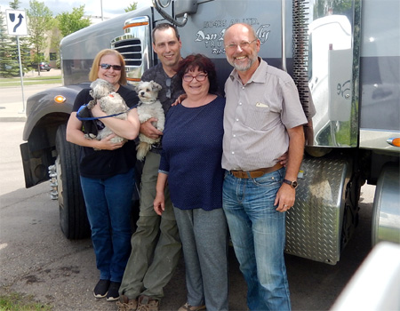 Zu Mittag erreichen wir Edmonton. Gord wäscht den total verdreckten Laster und dessen genauso schmutzige Ladung und dann stehen wir nach fast 3.000 Kilometern Huckepack vor der Mercedes-Werkstätte. Gord ruft einen Abschleppdienst, weil wir zum Abladen einen Autotransporter benötigen. Der Abschied von Nadina und Gord und den Hunden fällt uns schwer, wir haben uns sehr angefreundet. Bei Mercedes sitzen wir zunächst drei Stunden rum. Dann ist es Gewissheit: Der Zerberus hat einen Motorschaden. Ein neuer Motor ist in Nordamerika nicht verfügbar, weil die Sprinter hier alle Benzinmotoren haben. Es gibt daher hier mit Garantie auch keinen gebrauchten. Somit gibt es eigentlich nur zwei Möglichkeiten: Erstens einen neuen oder gebrauchten Motor aus Europa kommen lassen. Über die Kosten haben wir zur Zeit nicht einmal ansatzweise eine Vorstellung. Zweitens das Auto verschrotten lassen, denn verkäuflich ist er sicher nicht. In beiden Fällen könnten wir entweder in den nächsten Tagen heim fliegen oder mit einem Miet-Wohnmobil die Reise fortsetzen. Vielleicht sollten wir mal drüber schlafen. Das dürfen wir übrigens im Zerberus hinter der Werkstätte.
