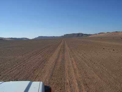 Erfoud - Rissani - (Taouz) - Hassi Remlia - Tafraoute - Zagora Von Erfoud nach Rissani gelangt man rasch auf guter Asphaltstraße. Von Rissani wollen wir direkt nach Taouz fahren, um den touristenüberlaufenen Ort Merzouga zu meiden. Vor Rissani zweigen wir rechts auf den touristischen Rundweg ab, fahren nicht ins Zentrum von Rissani, und stellen den Kilometerzähler auf Null. Der asphaltierte Rundweg führt durch mehrere Ksour, darunter Ksar Tabassamt. Bei km 13, das ist bei N31 13.621 W4 14.895 verlassen wir den Rundweg auf einer kleinen Piste direkt nach Süden und queren das Wadi Ziz. Vorsicht: Üble Betoneisen ragen aus dem Brückenbeton! Wir überqueren eine Sebka. Unsere Piste hat sich nach Süd-Osten gedreht. Bei km 27, N31 08.004 W4 12.735 zweigen wir neuerlich nach Süden ab und überqueren bei N31 02.893 W4 09.727 einen Pass. Bei km 42 passieren wir einige verfallene Häuser. Es könnte sich um Chaib er Ras handeln. An der Kreuzung N31 00.767 W4 07.670 nehmen wir an, dass es links nach Taouz geht. Wir fahren rechts (nach Westen), weil wir nicht nach Taouz müssen und so möglicherweise direkt auf die Querpiste Taouz-Hassi Remlia kommen. Die Piste vollzieht nun einen Halbkreis (Schwenk wiederum nach Süden bei km 52), bis wir an einer Wegkreuzung nahe eines verlassenen Bergbaudorfes nach Westen abzweigen. Bei km 66 fahren wir durch ein breites Wadi Richtung Südwesten auf auffällige Tafelberge zu. Ab N30 55.920 W4 16.454 muss man sich etwa auf 225 Grad halten. Man ist geneigt, irgendwelchen gut ausgefahrenen oder neuen Spuren zu folgen. Doch die LKW-Spuren landen alle in Bergwerken, wo es nicht weitergeht! Bei km 79, N30 52.800 W4 19.912 queren wir neuerlich einen Pass und fahren durch wunderschöne Wüstenlandschaften zu N30 50.983 W4 21.938 und N30 52.503 W4 24.670, wo die Piste nach Süden schwenkt, um geradewegs auf Hassi Ramlia zuzuführen. N30 41.153 W4 24.981 ist die Auberge Oasis Ramlia. Es geht zunächst weiter nach Süden durch das Dorf, an dessen letzem Haus man rechts abbiegen muss. Der weitere Verlauf der Strecke ist leicht zu finden. Erst am Lac Maider kann es wieder Orientierungsprobleme geben. Es scheint logisch, den See im Norden zu umfahren, da eine Falaise sein Ende anzeigt, während im Süden nicht klar ist, wie weit sich der See erstreckt. Doch im Norden schiebt sich die schmale aber endlos lange Oase Tafraoute zwischen See und Falaise und macht eine Umfahrung des Sees unmöglich, möchte man nicht durch Gärten und Felder fahren und sich den Unmut der Einwohner zuziehen. Man fährt am besten unmittelbar nach der Auberge Lac Maider (N30 40.105 W4 41.140) den See entlang nach Süden und folgt dann nach knapp 1,5 km (je nach Wasserstand aber auch in größerer Entfernung!) frischen (!) Spuren nach Westen über den See. Der See lässt sich im Idealfall mit 100 km/h befahren. Der weitere Verlauf der Strecke ist klar. Wer weiter die (vielleicht schönere) Strecke an der algerischen Grenze entlang bis Tagounite fahren will, muss etwa bei N30 38.04 W4 50.13 nach Südwesten abbiegen. Wir hingegen fahren weiter mehr oder weniger nach Westen, bis wir bei N30 38.572 W5 06.200 Onim Jibane und schließlich bei N30 36.098 W5 09.770 einen Ort mit auffällig hohem Minarett passieren. Neben der nun bis Zagora immerzu 245 Grad folgenden und zunehmend steiniger werdenden Piste finden sich immer wieder Löcher in kurzen Abständen, die an frisch ausgehobene Gräber erinnern. In Wirklichkeit handelt es sich aber um eine Wasserleitung; die Schächte stehen untereinander in Verbindung. Die sehr schöne Strecke von Zagora über Tagounite und Mhamid nach Foum Zguid ist in verschiedenen Büchern beschrieben |