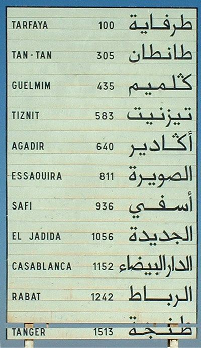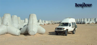 Westsahara Mittwoch, 13. Dezember 6, Tag 26 Der Grenzübertritt erfolgt auf mauretanischer Seite sehr rasch (15 Minuten). Von der Devisenerklärung, die wir bei der Einreise ausfüllen mussten, will man erfreulicherweise nichts mehr wissen, Zoll- und Gendarmeriebeamte sind sehr freundlich, nur die Polizisten wollen ein Geldgeschenk, das ich standhaft verweigere. Auf marokkanischer Seite dann die übliche Stunde Wartezeit bei der Polizei, in der die Pässe auf einem Schreibtisch reifen müssen, bis sie abgestempelt werden können. Beim Zoll rasche Ausstellung der Fahrzeugpapiere, die Gendarmerie will diesmal nichts von uns. Nun haben wir also wieder knapp 1.000 Kilometer Westsahara vor uns, die außer ein paar netten Orten im Norden kaum etwas zu bieten hat. Gelegentlich liegen neu erbaute Dörfer an der Straße, die noch immer nicht bewohnt sind. Bei der ersten Tankstelle versuche ich, meine verbliebenen Ougya gegen Dirham einzutauschen, doch der Kurs ist so schlecht, dass ich lieber die mauretanischen Scheine für's nächste Mal behalten will, doch da kommt ein Wiener Pärchen mit einem Discovery, das für drei Monate in den Senegal und nach Gambia fährt. Die beiden wechseln unsere Ougya in Euro, womit ihnen und uns geholfen ist. Von ihnen erfahren wir auch, dass wir ins Schlechtwetter (schon wieder!) fahren. Bis gestern hat es nördlich von Laayoune geregnet! Da hier an der ersten Tankstelle in der Westsahara der Diesel etwas teurer ist, als weiter im Norden, tanken wir nur wenig und wollen erst an der nächsten Tankstelle volltanken. Doch die hat keinen Diesel und bis zur übernächsten sind es noch 108 Kilometer. Das könnte sich knapp ausgehen. Tut es auch, doch hier ist die Zapfsäule kaputt. Glücklicherweise befindet sich 500 Meter weiter eine zweite Tankstelle, zu der wir mit dem letzten Tropfen Sprit rollen. Glück gehabt! Im angeschlossenen Restaurant nehmen wir auch ein Abendessen ein, eine Kinderportion von einer Tajine. Etwas später schlagen wir abseits der Straße unser Nachtlager auf. Km 531/8.812. Donnerstag, 14. Dezember 6, Tag 27 Man verzeihe mir, dass ich schon wieder vom Wetter schreibe, aber wir hadern schon sehr damit, dass wir in Mauretanien so schlechtes Wetter hatten. Kaum sind wir wieder in der Westsahara und müssen große Distanzen zurücklegen (den Wegweiser auf dem Foto haben wir heute Nachmittag in L'Aayoune fotografiert) und damit viel im Auto sitzen, sind Wind und Wolken weg und es ist angenehm warm. Gleich in der Früh fahren wir an "unseren" Strand, wo wir schon öfters besonders schöne und große Muscheln und Schnecken gefunden haben, doch es ist gerade die Flut am Höhepunkt und nicht viel zu finden. Da wir "Straßendruck" in den Reifen haben (4,5 bar), ackern wir den Strand gewaltig um und haben zu tun, dass wir wieder raus kommen. In der Westsahara finden wir zwei Städte besonders sympathisch: Boujdour, wo wir ins Internetcafe gehen, Gemüse kaufen und zu Mittag essen. Hier sind die Vorarbeiten zum Hafenbau voll im Gang (siehe unser Tagebuch vom 28. November). Bei der Stadtausfahrt fallen uns erstmals die Slums auf, die sich hinter einer Mauer verstecken und deren Ausmaß sich erst zeigt, wenn man einen Blick vom Dach unseres hohen Wagen macht. Die andere Stadt ist L'Aayoune, wo wir einen Kaffe trinken und Geld vom Bankomaten beheben. Die Stadt ist sehr sauber, alle Häuser sind altrosafarben, niemand ist aufdringlich. Marokko Kurz nach Tarfaya befindet sich die letzte Tankstelle, an der man noch zum Westsahara-Preis (4,6 DH, 0,43 EUR) tanken kann. Wir füllen beide Tanks randvoll und betanken noch beide Kanister. Km 543/9.355. |