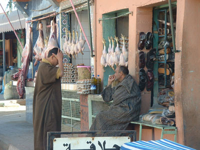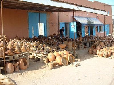 Freitag, 15. Dezember 6, Tag 28 Ob wohl der starke Kaffe von gestern daran Schuld ist, dass ich um 3 Uhr wach werde und nicht mehr einschlafen kann? Ich lese eine Stunde, dann wird auch Susi munter und wir beschließen, weiterzufahren. Nach zwei anstrengenden Stunden - viel Schwerverkehr und Dunkelheit - sind wir dann so müde, dass wir wieder eine Stunde schlafen können. Nun gibt's Frühstück und dann geht es zügig weiter über Guelmin nach Buizakarne, wo Heumarkt ist. Kurz vor Tiznit kommen wir an der Töpferei vorbei, wo wir heuer im Frühjahr so günstig Tajinen gekauft haben. Auch heuer kaufen wir einige große Krüge und Töpfe zum Spottpreis. Der Verkäufer packt unseren Einkauf gut ein und ich gebe ihm ein Trinkgeld. Das will er nicht nehmen und als ich darauf bestehe, gibt er uns noch einen Teller drauf. Er erklärt uns, dass es für ihn Ehrensache ist, dass er für Einheimische und Touristen den gleichen Preis macht. Wenn nur alle so dächten ... Unser Freund besitzt auch einen kleinen Lebensmittelladen, wo wir noch Brot kaufen und einen riesigen Karton Datteln. Die sind echt lecker und ebenfalls sehr billig. Von Tiznit fahren wir nicht direkt nach Agadir weiter, sondern machen einen Ausflug in den Antiatlas nach Tafraoute. Die Landschaft ist großartig, es geht auf 1.640 Meter Höhe, an einigen Stellen liegt ein wenig Schnee. Tafraoute ist ein wunderschöner Ort inmitten von beeindruckenden Felsformationen. Der Umweg kostet uns zumindest drei Stunden Extrafahrzeit, doch er hat sich jedenfalls gelohnt. Von Tafraoute geht es dann in endlosen Kurven langsam nach Agadir hinunter, das wir bei Dunkelheit erreichen und Richtung Marrakesch hinter uns lassen. Am Fuß des Hohen Atlas übernachten wir neben der Fernstraße in einem Wald. Km 621/9.976. |