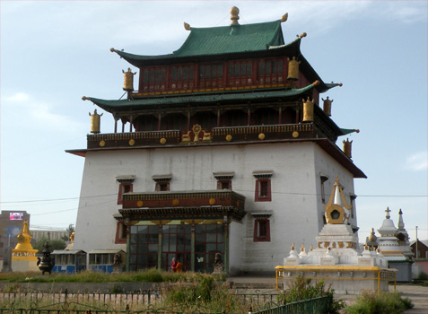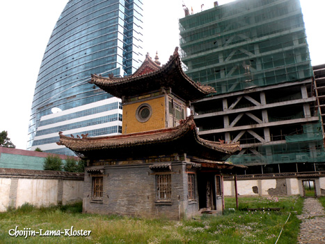 Wir tauchen in die Smogglocke von Ulaanbaatar ein, auf der Einfahrtsstraße ist reichlich Verkehr, es geht nur langsam voran. Als erstes suchen wir die Mercedes-Werkstatt (N47.891470 E106.868511) auf, wo man uns für morgen 10 Uhr einen Termin gibt. Zu Mittag essen wir im Brauhaus (Bier und Essen ok, Service miserabel). Wir spazieren über den Sukhbaatar-Platz und sehen uns das Gandan-Kloster und den Maidari-Tempel an. Zu Abend essen wir im Restaurant des Narantuul-Hotels (N47.915588 E106.895902); vom 12. Stock hat man einen schönen Blick über die Stadt. Auch hier: Essen sehr gut, Service schlecht. Wir übernachten im Hof des Gandan-Klosters, haben aber wider Erwarten keine ruhige Nacht, weil bis tief in die Nacht hinein Leute Ball spielen und Autos zu- und abfahren. Km 195/7.058/24.201.