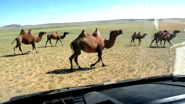 Ich schlafe schlecht, Alpträume quälen mich. Gleich am Morgen spüre ich wieder die Anspannung, weil wir ein bis zwei Tage hinter unserem Zeitplan liegen und in 10 Tagen unser Flugzeug abhebt, aber kaum Hoffnung besteht, auf der üblen Piste unser Tempo erhöhen zu können. Zudem wissen wir nicht, in welchem Zustand die Strecke in die Gobi ist und ob uns die Orientierung im Süden der Mongolei Schwierigkeiten bereiten wird. Schon nach kurzer Fahrt auf der Wellblechpiste habe ich einen Nervenzusammenbruch. Ich kann und will auf dieser Rüttelpiste nicht mehr fahren. Das ganze Auto ächzt und stöhnt, alles wird kaputt, gestern das Notebook, heute die Brauchwasserpumpe. Ich kann nicht mehr. Wir halten Kriegsrat und beschließen, uns zu entschleunigen, den Abstecher in die Gobi sausen zu lassen und statt dessen die Region um Kharkorin zu besuchen. Es geht mir schlagartig besser, weil ich nun ohne Zeitdruck fahren kann. Am späten Vormittag erreichen wir Altai, danach gibt es 130 Kilometer guten Asphalt, danach wieder die bekannte Rüttelpiste. Am Nachmittag haben wir einen Platten, den ersten auf unserer Weltreise. Km 313/5.695/22.838.