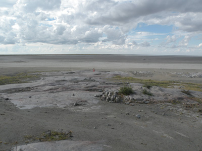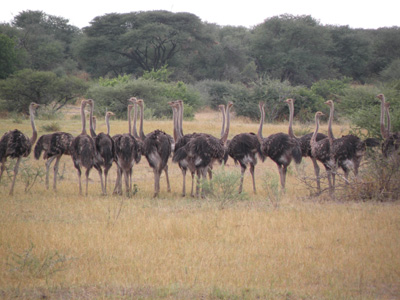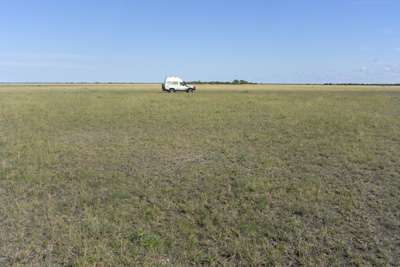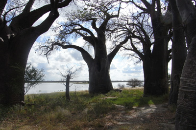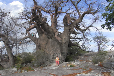 Ostersonntag, 24. April 11, Tag 8, Kubu-Island Bei wolkenlosem Wetter brausen wir auf der Asphaltstraße Richtung Nata. In Gweta kaufen wir Brot, Kartoffeln und Cola. Recht viel mehr gibt es in dem einzigen heute offenen Laden auch nicht. Ca. 20 Kilometer vor Nata biegen wir (S20 10.702 E26 01.425) nach Süden auf die die Sowa-Pan entlangführende Piste ein. Diese Pfanne wird im Reiseführer als Salzpfanne mit weißer Oberfläche beschrieben. Doch sie ist grasbewachsen, von weiß keine Spur. Wir fahren auf einem flachen Rücken, links die Pan, rechts eine tiefer liegende Buschebene, passieren einzelne Hütten, wenige Krale, treffen auf Rinderherden. Auf der vermeintlich einsamen Strecke kommen uns immer wieder Südafrikaner mit Geländewagen, teilweise mit Geländewohnwagenanhängern entgegen. Wird fast schon zur Plage, weil wir ständig ausweichen müssen. Kurz vor dem Veterinärzaun steht Wasser in den Fahrspuren, daneben gibt es unzählige weitere Spuren, in denen ebenfalls das Wasser steht. Wir suchen uns eine aus und bleiben prompt stecken. Nur mit Mühe und unter Einsatz aller verfügbaren Gänge und Sperren arbeitet sich unser Buschtaxi Zentimeter für Zentimeter zurück aus dem Schlamm. Beim nächsten Versuch an einer anderen Stelle klappt die Durchfahrt dann besser. Kurz nach dem Veterinär-Gate (S20 45.800 E25 44.330) biegen wir auf die Nordzufahrt zum Kubu-Island ein, die durch trockenen Busch führt, erst im letzten Abschnitt geht es durch ein paar Pfützen. Dann taucht die "Insel" auf. Kubu-Island ist eine ca. einen Kilometer lange und 200 Meter breite Felseninsel inmitten der Sowa-Pfanne. Von Nordwesten und Südwesten gibt es zwei Zufahrten. Entlang der von uns heute gefahrenen Zufahrt ist die Pfanne grün. An allen anderen Seiten der Insel aber ist die Pfanne feucht-sandig, etwa so wie ein völlig flacher Strand bei Ebbe. Die Insel besteht aus rötlichen Felsen, auf und zwischen denen unzählige bizarre Affenbrotbäume stehen. Wir machen einen ausgedehnten Spaziergang auf und um die Insel und erheben sie zu einem der schönsten Plätze auf Erden! Wir übernachten auf dem Camp (Regulär 230 BWP für 2 P + Auto = 25,50 EUR, verhandeln möglich), das so weitläufig ist, dass es trotz der Anwesenheit einer Unzahl von Südafrikanern recht ruhig ist. Erstmals gibt es ein Lagerfeuer, das wir an der Restglut von gestern(!) enzünden. Bemerkenswert: Auf Kubu-Island gibt es keine Mücken! Km 256/1.803/45.245. |