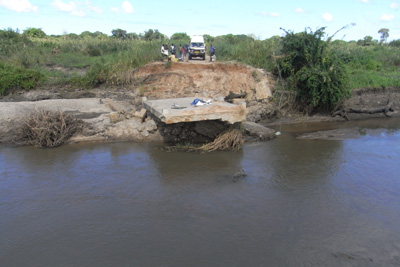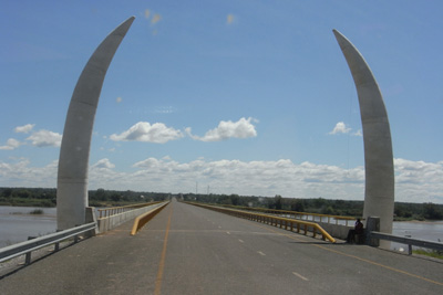 Sonntag, 15. Mai 11, Tag 29, Unit One Wenn man so wie wir von Pemba, das wir vorgestern verlassen haben, nach Daressalam will und einen Blick auf die Landkarte macht, glaubt man, dass man in der Nähe der Küste direkt nach Norden fahren kann. An der Mündung des Grenzflusses Rovuma ist auf allen Karten ein Grenzübergang eingezeichnet. Doch dieser Grenzübergang kann nur den Personenverkehr abwickeln, Reisende müssen den Fluss mit Booten queren. Seit vor Jahren die Autofähre gesunken und seither nicht ersetzt wurde, müssen Autos einen der beiden neuen Grenzübergänge Unit One, 250 Kilometer landeinwärts, oder Unit Two, fast 600 Kilometer landeinwärts, benützen. Das ist der Grund, warum wir gestern schon weit in's Landesinnere gefahren sind und heute etwa 30 Kilometer südlich des Rovuma parallel zu diesem weiter nach Westen fahren. Die Piste ist eher mäßig. Die Ausreiseformalitäten werden nun nicht mehr, wie im Internet gerade noch berichtet, im Dorf Ngapa (S11 18.106 E39 18.244), 120 Kilometer vor dem Grenzübergang, abgewickelt, sondern direkt vor der Brücke (S11 25.163 E38 29.771). In Ngapa erfolgt lediglich eine Kontrolle der Pässe und des Carnets. Vielleicht zwei Kilometer vor der Brücke biegen wir auf eine neue, breite, zweispurige Asphaltstraße ein. Unglaublich. Die Ausreiseformalitäten dauern 20 Minuten. Im Immigration Office muss ich eine unerwartete Ausreisegebühr in Höhe von 198 Mt (4,50 EUR) bezahlen, Susi nicht. Da ich keine Meticals mehr habe, begnügt sich der Officer mit 5 US-Dollar, die er auch quittiert. Dem Zollbeamten muss ich mühsam erklären, wie das mit dem Carnet funktioniert. |