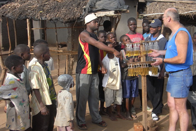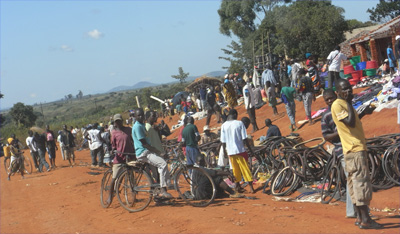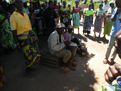Samstag, 7. Mai 11, Tag 21, Milange Das Internetcafe in Mocuba ist leider geschlossen. Wegweiser haben sie auch keine und so müssen wir uns etwas mühsam durchfragen, bis die Piste nach Milange gefunden ist. Bis auf ein paar kurze Abschnitte geht es nur langsam voran. Wir lassen zwar zweimal Luft aus den Reifen, doch noch immer rumpelt es ziemlich. Und auch hier: Pausenlos Menschen auf und neben der Piste. Auf den Feldern wird vor allem Maniok und Hirse angebaut, dazwischen wieder Bananen und Nussbäume. Unser Reiseführer schreibt von häufigen Polizeikontrollen auf den Straßen, doch wir haben auf unserer langen bisherigen Fahrt auf Hauptverbindungen keinen Polizisten getroffen. Doch hier im absoluten Abseits steht ein Dorfpolizist auf der Straße und kontrolliert unsere Papiere. Unglaublich. In der Nähe von Liciro ist in einem Dorf grad ein Fest im Gange. Frauen tanzen zum Rhythmus von Trommeln im Kreis, die Männer stehen außen herum und alle singen oder pfeifen auf Trillerpfeifen. Wir halten und steigen aus. Sofort verstummt der Gesang, stoppt der Tanz. Alle sehen uns neugierig an. "Bon dia" grüße ich und ein ganzer Chor grüßt zurück. Ich deute an, dass ich mittanzen möchte und schon ist das Fest wieder im Gang und wir sind mittendrin. Nach einem Weilchen möchten wir nicht länger stören und wir verabschieden uns. "Adio amigos!", keine Ahnung, ob das Portugiesisch ist, doch es wird verstanden, alle antworten so ähnlich und winken uns nach. Tanzen macht hungrig und weil es in den nächsten Dörfern kein Restaurant oder ähnliches gibt, braten wir uns am Straßenrand ein Omelett. In Tengua gibt es eine katholische Mission. Aus der Ferne sieht die zweitürmige Kirche fast wie eine Kathedrale aus, aus der Nähe betrachtet ist sie doch ziemlich klein und halbwegs renovierungsbedürftig. Hinein dürfen wir nicht, weil der Pfarrer nicht da ist. Dafür macht uns die Krankenschwester eine Führung durch die Geburtenstation des Hospitals. Die zwei Neugeborenen, die wir sehen, sind auffallend hell und ziemlich groß. Dann haben wir endlich Milange, die Grenzstadt zu Malawi, erreicht, wo wir eine Stadtrundfahrt machen und einen Kaffee trinken. Dabei sitzen wir mit einer jungen Britin an einem Tisch, die Mosambik alleine und mit öffentlichen Verkehrsmitteln bereist. Alle Achtung! Wir haben uns vorgenommen, hier im Norden des Landes jede Gelegenheit zum Tanken zu nützen, weil man ja nie weiß, ob es im nächsten Dorf noch Sprit gibt. Mit zunehmender Entfernung zur Hauptstadt wird der Treibstoff teurer (hier 40 Mt = 0,92 EUR). Wir begeben uns auf die Piste nach Gurue, nehmen uns aber Zeit, die Verkaufsstände unter Eukalyptusbäumen entlange der Straße genauer in Augenschein zu nehmen. Es gibt Fisch, Maisöl in winzigen Plastiksäcken portioniert, Bananen, Tomaten, Zuckerrohr, aus Konservendosen hergestellte Öllampen, aus Autoreifen hergestellte Bremsbacken für Fahrräder und und und. Wir kaufen geschnitzte Holzlöffel, Besen aus Gras, Nüsse, eine Stange Zuckerrohr und Bananen. Kurz nach Milange hält uns eine dreiköpfige schwer bewaffnete Polizei/Militärpatroille an, wir dürfen aber nach kurzem Gespräch passieren, nur hat einer der drei ziemlichen Hunger, lässt er uns wissen. Ich biete ein paar Erdnüsse an, will er nicht, eine Banane auch nicht, da kann der Hunger wohl nicht so groß sein! Unser Eindruck, dass man hier ein wenig nervös ist, verstärkt sich bei einer Straßensperre wenig später. Ein junger Polizist will unser Auto durchsuchen. Ich frage ihn, was er eigentlich sucht, doch er versteht mich nicht. Auch der herbeigerufene Dolmetscher ist wenig Hilfe. Ich öffne die Hecktür und im Nu hat der Polizist, ins Auto gebeugt, seine Finger in unseren Gepäckstücken. So geht das natürlich nicht. Ich nehme den Herrn an der Schulter und hole ihn aus dem Auto. Er sagt zum Dolmetscher, dass wir in diesem Fall umkehren müssten, das habe ich auch ohne Übersetzung verstanden. Ich erkläre, dass er gern dort und da reinschauen darf, aber ich öffne die Gepäckstücke und er schaut nur. Damit ist er einverstanden. Als erstes will er in unsere Futterkiste sehen. Spanngummi auf, Kiste raus, Blick rein, Kiste rein, Spanngummi zu. Dann will er eine Tasche inspizieren. Zwei Spanngummi auf, Tasche runtergehoben, Reißverschluss auf, ich zeige ihm jedes einzelne Kleidungsstück, das reicht ihm bald, er will eine Seitentasche sehen, ich räume zuerst alle Kleidungsstücke sauber wieder ein, dann Seitentasche auf, ein Etui raus, Etui auf, Medikamente angesehen, Etui zu, nächstes Etui raus, Etui auf, Stromadapter angesehen, Brille angesehen, es reicht ihm, er will die andere Seitentasche sehen, Etui eingeräumt, Etui zu, beide Etuis in die Tasche, Tasche umgedreht, Seitentasche auf, Schmutzwäschesack raus, getragene Unterwäsche präsentiert, anscheinend reicht ihm die Autodurchsucherei jetzt endlich, er will die Reisepässe sehen, also Schmutzwäschesack rein, Seitentasche zu, Tasche auf ihren Platz, Spanngummis fixiert (dauert leider ein wenig länger als üblich, bin vielleicht ein wenig ungeschickt heute), Reisepässe, wo haben wir die hingetan?, nach kurzer Suche gefunden, er findet die Visa, aber nicht die Einreisestempel, ich zeige ihm die Einreisestempel, er will noch wissen, woher und wohin und dann ist's vollbracht und wir dürfen fahren. Bald ist es Zeit, an den Nachtplatz zu denken, doch es gibt hier nur Felder und Hütten und Menschen, Menschen, Menschen. Irgendwann taucht ein wenig abseits der Straße ein Sportplatz auf. Wer weiß, vielleicht klappt's ja wieder. Wir müssen wieder zum Chief, doch der ist nicht da, seine zwei Frauen geben Audienz. Übernachten am Sportplatz kommt natürlich überhaupt nicht in Frage, als weitgereiste Gäste dürfen wir direkt vor dem Haus des Chiefs übernachten. Doch da es hier nur so vor Leuten wimmelt, die entweder dem häuptling'schen Haushalt angehören oder auf Audienz warten, lehne ich dankend ab, diese Ehre könnten wir nicht 
