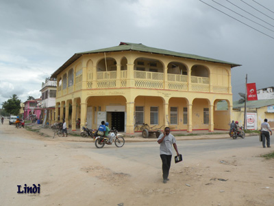 Montag, 16. Mai 11, Tag 30, Lindi In der Früh geht es uns beiden besser, dennoch sind unsere Intestina noch sehr unruhig. In Masasi schließen wir eine Autoversicherung ab (Versicherungsbüro S10 43.782 E38 48.329, 30.000 TSH = 14,4 EUR für 3 Monate = Mindestdauer), kaufen Obst und Getränke und sitzen im Internet-Cafe, bis der Strom ausfällt. Gegen Mittag sind wir in Lindi, einer Provinzstadt an der Küste. Wir haben sozusagen den Umweg zur Unit One-Bridge vollendet. Lindi ist eine gemütliche Kleinstadt, in der noch viele Häuser aus deutscher Zeit stehen, freilich nicht alle sehr ansehnlich. Das an anderer Stelle hoch gepriesene Restaurant im Maleika-Hotel verlassen wir ohne Konsumation. Es ist ungemütlich, vor dem Fenster brüllt ein Stromgenerator, im Speiseraum der Fernseher, außerdem gibt es nur mehr eine Portion Essen. Sehr empfehlen können wir hingegen Jaffery's Restaurant (S9 59.918 E39 42.915), wo wir Reis mit Grillhuhn mit reichlich weiteren Beilagen essen (2 Portionen incl. zweier Getränke und einem Kaffee zusammen 970 TSH = 5 EUR). Wir machen noch eine kleine Stadtrundfahrt, doch dann beginnt es zu regnen und wir fahren weiter Richtung Daressalam. Wir haben also doch noch die Regenzeit eingeholt, die hier in Ostafrika ein bis zwei Monate später zu Ende geht. Man könnte natürlich philosophieren, ob nicht die Regenzeit uns eingeholt hat. Als wir einen Nachtplatz suchen, gibt es natürlich nicht einen einzigen Quadratmeter trockenen Bodens. Wir nächtigen zwischen Maisfeldern vor einem aus zwei kleinen Hütten bestehenden Anwesen. Die Leute sind sehr freundlich und bringen uns einige Maiskolben zum Abendessen. Leider ist der Boden so lehmig-feucht, dass wir im Nu zentimeterdick Erde an unseren Schuhen haben. Außerdem gibt es viele Mücken, vor allem die gemeinen, die man nicht hört und deren Stiche tagelang jucken. Km 353/7.085/50.627. |