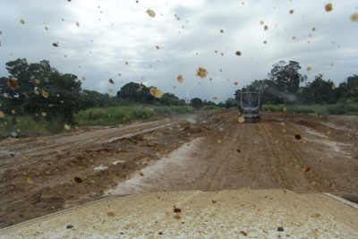 Auf tansanischer Seite dauert die Sache ein wenig länger, eine Stunde und 20 Minuten. Das Visum kostet 50 USD (35 EUR) p.P., beim Zoll bezahlen wir 5 USD (3,50 EUR), für die eine hologrammverzierte Quittung mit drei Durchschlägen von Hand geschrieben wird. Es dauert dann schier endlos, bis die Daten aus unserem Carnet in den Computer eingegeben sind. Der kennt zwar den OAMTC, verbindet ihn aber mit Albanien. Österreich kommt in der Länderauswahl nicht vor. Es ist für den älteren Zollbeamten anscheinend eine große Überwindung, seinen sehr jungen Kollegen zu Hilfe zu holen. Der kennt sich mit dem Computer gut aus, kann aber Österreich auch nicht eingeben. Unser Auto ist vermutlich jetzt als albanisches Fahrzeug gespeichert. Endlich können wir fahren. Auf der Prachtstraße geht es etwa fünf Kilometer flott dahin, dann mündet sie in eine Piste von der Art, auf der wir gestern und heute in Mosambik unterwegs waren. Man hat auf beiden Seiten der neuen Brücke fünf Kilometer Vorzeigestraße drangebaut. Mehr nicht. Kurz darauf passieren wir schon eine Brücke über einen Zufluss des Rovuma, zu der wir deutlich weniger Vertrauen haben. Wir beenden unsere Fahrt für heute früh, da Susi schon seit gestern Abend Bauchschmerzen hat, die sich nun verstärken. Auch in meinem Bauch rumort es. Diät ist angesagt. Unser Nachtplatz liegt am Fuß eines Monolithen, von dem mehrere Arbeiter mit schweren Hämmern Steine abschlagen. Km 219/6.732/50.274. |