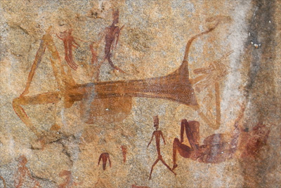 Montag, 2. Mai 11, Tag 16, Diana's Vow Wir stehen um 6 auf, doch weil es nieselt, verlängern wir die Nacht und machen einen neuen Versuch um halb 9. Das lohnt sich, denn nun hat der Niederschlag aufgehört und wir können im Freien Frühstücken. Wir fahren das kurze Stück zu Diana's Vow, einer prähistorischen Kultstätte, die sich als beeindruckender Ort herausstellt. Nicht nur die Felszeichungen sind ungewöhnlich, denn sie sind teilweise in zwei Farben gemalt und es erinnert eine Figur an Darstellungen aus dem alten Ägypten, auch die Stätte selbst ist außergewöhnlich: Inmitten großer Felsen ist ein stimmungsvoller Hof entstanden. Obwohl wir uns an einer der Top-Sehenswürdigkeiten Zimbabwes befinden, ist außer uns kein Mensch hier, weder weitere Besucher noch jemand, der Eintrittsgeld kassiert. Wir hinterlassen eine Spende in einem Tontopf für denjenigen, der die Stätte pflegt; immerhin sind die Zufahrt und die Wiese gemäht. Mittlerweile zeigt sich die Sonne und wir verbringen den restlichen Vormittag und eine verlängerte Mittagspause hier. Endlich habe ich Muße, die kaputte Vorhangschiene an der Fahrertür zu reparieren. Das Ersatzteil fährt schon viele tausend Kilometer mit. Nur wenige Kilometer entfernt befindet sich eine weitere Fundstätte von Felsmalereien, die Pink Elephants. Sie sind allerdings nicht so leicht zu finden und wir müssen uns von den Besitzern der Farm (S18 19.879 E32 17.706), auf deren Gelände sie sich befinden, hinführen lassen. Letty und Elliot erzählen, dass zwei- bis dreimal im Jahr jemand die Elefanten ansehen kommt. Von den fünf Elefanten ist nur mehr einer gut erhalten, dieser glänzt durch ungewöhnliche Detailtreue. Es entwickelt sich ein sehr informatives Gespräch mit den Farmersleuten über die Situation des Landes. Sie scheinen sehr gebildet zu sein und zeigen auch großes Interesse an unserer Reise und an Österreich. Km 23/3.494/46.936. |