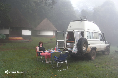 Freitag, 29. April 11, Tag 13, Chirinda-Forest In der Nacht hat es zu regnen begonnen, mal was neues. Und es will in der Früh gar nicht aufhören. Die Wolken hängen so tief, dass sogar die auf einem kleinen Hügel gelegenen Upper Ruins darin verschwinden. An eine Besichtigung ist nicht zu denken. Wär' wohl auch bei Schönwetter nichts daraus geworden, denn Susi hat einen Rheumaschub und es ist ihr sogar der kurze Weg zum Museum zu weit. Aber man lässt uns ausnahmsweise bis direkt zum Museum zufahren. Die Ausstellung widmet sich neben der Geschichte der Ruinen mehreren steinernen Vogelfiguren, die Anfang des 20. Jahrhunderts in Great Zimbabwe gefunden, nach Kapstadt verbracht und erst in jüngerer Zeit zurückgegeben wurden. Besonders beeindruckend jedoch ist die Geschichte einer zerbrochenen Vogelfigur, deren zwei Teile verschiedene Wege genommen haben, getrennt in mehreren europäischen Museen ausgestellt wurden und erst nach zirka hundert Jahren hier wiedervereint wurden. Drei Kilometer außerhalb von Masvingo sehen wir uns die Italienische Kapelle (S20 04.133 E30 51.952) an, die von italienischen Kriegsgefangenen in den 40er-Jahren gebaut wurde. Dann geht's weiter Richtung Osten. Auch wenn sich die Wolken ein wenig heben, bleibt es ganzen Tag bedeckt und die Gipfel niedriger Berge ragen in die Bewölkung. Plötzlich taucht ein riesiges Gebäude etwa einen Kilometer abseits der Straße auf. Es handelt sich um die fast fertig gestellte Kirche der Zionisten. Sie fasst 18.000 Menschen und wird im August eingeweiht. An der Feierlichkeit soll auch der Vize-Präsident teilnehmen. Für ihn hat man ein eigenes Hotel mit acht Zimmern gebaut. Wir sehen hunderte Menschen, die sich zum Essen anstellen. Sie arbeiten hier unentgeltlich. Auf der weiteren Fahrt verändert sich die Landschaft dramatisch: Fahren wir zuerst noch durch üppig grüne Ebenen, wird es bald felsig-hügelig und der Bewuchs nimmt ab. Auf der über 300 Meter langen Birchenough-Bridge queren wir den Save. Schließlich erreichen wir die Gebirgskette, die die Grenze zu Mosambik bildet. Hier fallen zunehmend größere Niederschläge, was Maisfelder und später Bananenplantagen anzeigen. Auch während unserer Fahrt beginnt es zu regnen. Über Chipinga fahren wir auf den Mount Selinda, wo es Afrikas südlichsten subtropischen Urwald gibt. Der Chirinda-Forest ist echt beeindruckend: Auf einer kleinen Lehmpiste fahren wir durch den Wald, der sich über uns schließt und den Himmel verdeckt. Die Bäume sind riesig, weit mehr als kirchturmhoch. Mehrmals hängen Äste so tief, dass wir unserem Buschtaxi bei der Durchfahrt weh tun. Und kontinuierlich regnet es. Denken wir. Wenig später erreichen wir eine auf einer Lichtung gelegene Campsite (8 USD = 5,60 EUR p.P.), auf der es nicht regnet. Rund um uns hört man aber das Geräusch von fallendem Regen. Die Lösung heißt Nebelwald. Der Nebel kondensiert an den Blättern der Bäume und die Tropfen fallen dann etagenweise zu Boden. Wenn man also im Wald steht, "regnet" es, auf der Lichtung nicht. Hier ist es nur nebelnass. Auf der Campsite sind wir die einzigen Gäste. Es gibt eine warme Dusche, aber keinen Strom und daher kein Licht. Km 307/3.069/46.511. |