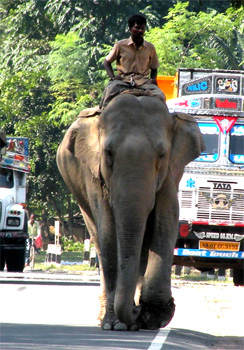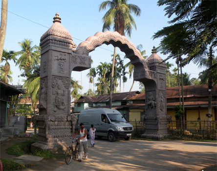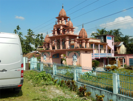 Nicht viele Touristen verlaufen sich in die Ostprovinzen Indiens und so ist unsere Abfahrt vom Nachtplatz die Attraktion, der zahlreiche Menschen beiwohnen. Bald sind wir in Hajo, wo wir einen der fünf auf Hügeln um den Ort gelegenen Tempel ansehen. Susi muss leider unten bleiben, sie sieht sich außer Stande, die lange Treppe hinauf zu bewältigen; eine ihrer Bandscheiben beschert ihr starke Schmerzen. Der älteste Teil des Tempels ist ein ungewöhnlicher Kuppelbau, in dem es so dunkel ist, dass man die Statuen darin nur schwer erkennen kann. Vom Hügel hat man einen schönen Blick auf den darunter liegenden Teich und den Palmenhain dahinter. Durch zahllose Straßendörfer fahrend erreichen wir den Brahmaputra, den wir auf einer Doppelbrücke (unter uns fährt die Eisenbahn) überqueren. Die Tempel-Atrappen sehen immer echter aus und oft wissen wir nicht, ob ein Tempel aus Stein oder Stoff gebaut ist. In Guwahati besuchen wir die etwas außerhalb auf einem Berg gelegene Hindu-Pilgerstätte Kamakhya Mandir, wo wir mit Müh und Not einen Parkplatz ergattern. Mit dem Strom der Pilger gelangen wir zum mit hunderten Tagetes-Ketten geschmückten Tor der Anlage, wo man die Schuhe ausziehen muss. Die Pilger stellen sich in langen Schlangen in käfigartigen Gängen an, um ins Innerste des Haupttempels zu gelangen, einen an eine Gebärmutter erinnernden rot gefärbten Raum. Wer ein Ticket löst, kann nach deutlich kürzerer Wartezeit eintreten, doch auch hier ist uns viel zu viel Menschengewühl und so lassen wir den Uterus einfach aus. Das Treiben ist auch so total beeindruckend und wer Freude hat, beim Opfern von Tieren zuzusehen, kommt hier voll auf seine Kosten. In Guwahati finden wir das einzige im Reiseführer beschriebene Lokal mit internationaler Küche, die sich allerdings auf Fish and Chips beschränkt. Beides genießen wir sehr, denn das Asia-Food verliert schon irgendwie seine Faszination. Auch einen Supermarkt können wir aufspüren, denn Sodawasser ist sonst kaum wo zu kriegen. Nun besuchen wir noch den Pobitora-Nationalpark, der wegen seiner Panzernashornpopulation berühmt ist und durch einen kleinen Umweg erreichbar ist. Leider öffnet der Park erst im November, aber wir haben Glück im Unglück: Auf der Weiterfahrt sehen wir zehn bis zwölf Nashörner von der Straße aus. Phantastisch! Nach einer Stunde ostwärts auf der Autobahn übernachten wir an einem Truck Terminal, einer riesigen betonierten Fläche, offensichtlich gedacht zum Abstellen von LKW, mit angrenzenden unfertigen Bauten und einem winzigen "Restaurant", das ausschließlich Bier und Spirituosen in Flaschen verkauft. Km 151/1.327/39.939.