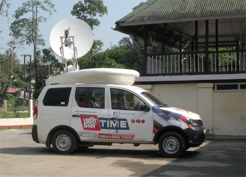 Nach unruhigem Schlaf stehen wir früh auf und warten. Gegen 9 kommen Journalisten und drei Kamerateams von lokalen Fernsehsendern und interviewen uns. Wir schildern den Vorfall, legen aber Wert auf die Feststellung, dass so etwas überall auf der Welt passieren kann und wir von der Freundlichkeit und Hilfsbereitschaft der Inder, der Menschen in Assam im speziellen und der Professionalität der Polizei beeindruckt sind. Manche Reporter interessieren sich besonders für unsere Art zu reisen und können es gar nicht fassen, dass wir mit dem Auto "on road" hierher gefahren sind. Die nächsten gut zwei Stunden nimmt mich die Polizei mit einer erneuten Befragung in Anspruch, zu der immer noch höhere Polizeioffiziere erscheinen, sogar der stellvertretende Polizeikommandant des Distrikts. Dann überraschen uns ein Kamerateam mit Übertragungswagen und später noch ein Reporter des Telegraph, einer angesehenen in Kalkutta erscheinenden Zeitung. Wir sind verblüfft ob des großen Medieninteresses. Wir erfahren nun auch, dass der Überfall auf Facebook eine Lawine losgelöst hat, viele Menschen sprechen uns Mut zu, entschuldigen sich für ihre Landsleute, die uns überfallen haben. Die Distriktspolizeipräsidentin hat sogar eine Pressekonferenz gegeben und die Nachricht über den Überfall wird auch den Weg in österreichische Zeitungen finden. Die Polizei macht sich auch auf die Suche nach einer Werkstatt, die unsere Scheibe reparieren kann, ein wegen der Feiertage schwieriges Unterfangen. Etwas anderes als eine notdürftige Reparatur kommt für uns ohnehin nicht in Frage, denn in einer Woche müssen wir in Myanmar einreisen, dazu brauchen wir zumindest zwei volle Fahrtage und bis Freitag lässt sich eine Scheibe aus Österreich garantiert nicht einfliegen. Die Sicht ist im wesentlichen nur auf der Beifahrerseite eingeschränkt und es geht in erster Linie darum, zu verhindern, dass die Scheibe während der Fahrt ins Auto reinzerbröselt. Am Nachmittag kommt dann ein Mechaniker, der ganz gute Ideen präsentiert. Wir fahren mit Polizeieskorte in seine Werkstatt, wo er aus Plexiglas eine halbe Windschutzscheibe anfertigt und mit Zweikomponentenkleber auf die gebrochene Scheibe aufklebt und mit Leinen anpresst. Leider verwendet er zudem eine Menge Silikon und dort, wo sich Kleber und Silikon vermengen, wird's wohl nicht kleben, befürchte ich. Während des ganzen Tages sind fünf, sechs Polizisten für uns abgestellt. Es ist schon dunkel, als wir wieder zum Amtsgebäude kommen. Über Nacht muss der Kleber trocknen und morgen sehen wir weiter. Km 6/1.587/40.199.
