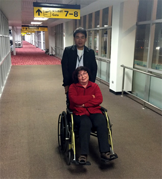... nach Wien fliegen. Die Rückreise ist vom ÖAMTC bestens organisiert, schon am Flughafen in Chang Mai steht ein Rollstuhl bereit. Susi wird vor den übrigen Passagieren ins Flugzeug gebracht, in Bangkok können wir in einer Lounge auf den Weiterflug warten. Dank der tollen Sitze im neuen Airbus der Austrian Airlines können wir ausgestreckt horizontal liegen und kommen ausgeschlafen in Wien an. Hier wartet ein Krankentransportwagen samt Sanitätern auf uns. Km 0/5.781/44.401.