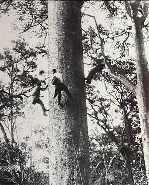 Der heutige Tag steht ganz im Zeichen der Kauri-Bäume, der zweitgrößten Baumart der Welt. Einst war die nördliche Hälfte der Nordinsel von Mischwald bedeckt, der von den Kauris dominiert wurde. Anfang des 20. Jahrhunderts haben die Eingewanderten bereits fast den ganzen Baumbestand gefällt und die bis heute verbliebenen Kauri-Wälder sind zusammen nur mehr etwa 100 km2 groß. Zudem sind die Baumriesen von einer Pilzkrankheit bedroht, weshalb man vor dem Betreten eines Kauri-Waldes die Schuhe reinigen, desinfizieren, nochmals reinigen und erneut desinfizieren muss. Neben dem Gate sitzt ein Ranger im Auto und schimpft lauthals, wenn man's nicht ordentlich macht. Nur einen Steinwurf neben der Straße befindet sich Tane Mahuta, Gott des Waldes, der größte Kauri-Baum mit 51 Metern Höhe und sechs Metern Durchmesser. Über sein Alter scheint man sich nicht einig zu sein, 1.500 Jahre? Oder 2.500? Die Altersbestimmung ist schwierig, weil die Kauris von innen her absterben und der Kern schon tot ist. Der Baum ist majestätisch und so ehrfurchtgebietend, dass die Leute sich hier nur flüsternd unterhalten. Nach einer kurzen Fahrt und einer längeren Wanderung statten wir auch noch dem zweitgrößten Baum Neuseelands einen Besuch ab: Te Matua Ngahere, Vater des Waldes. Obwohl niedriger, ist er dicker und noch beeindruckender als der Gott des Waldes. Hundert Kilometer weiter, schon längst liegen die Wälder weit hinter uns, lädt in Matakohe das Kauri-Museum zum Besuche ein. Nicht oft bringt mich ein Museum ins Schwärmen, aber dieses schon: Es zeigt in faszinierender Weise, wie die Bäume mühsam gefällt, zersägt und aus den Wäldern geschafft wurden, zunächst mit Gespannen von zehn, zwölf, 20 Ochsen, später Lokomotiven und Raupenfahrzeugen. Und man sieht alles über die Holzverarbeitung und -verwendung. Als sich das Museum-Syndrom einstellt und wir vor Kreuzweh kaum mehr stehen können, vereinbaren wir mit dem Herrn an der Kasse, dass wir uns den Rest morgen ausgeruht ansehen. Wir übernachten auf dem (teuren) Campingplatz hinter dem Museum. Km 143/4.421.